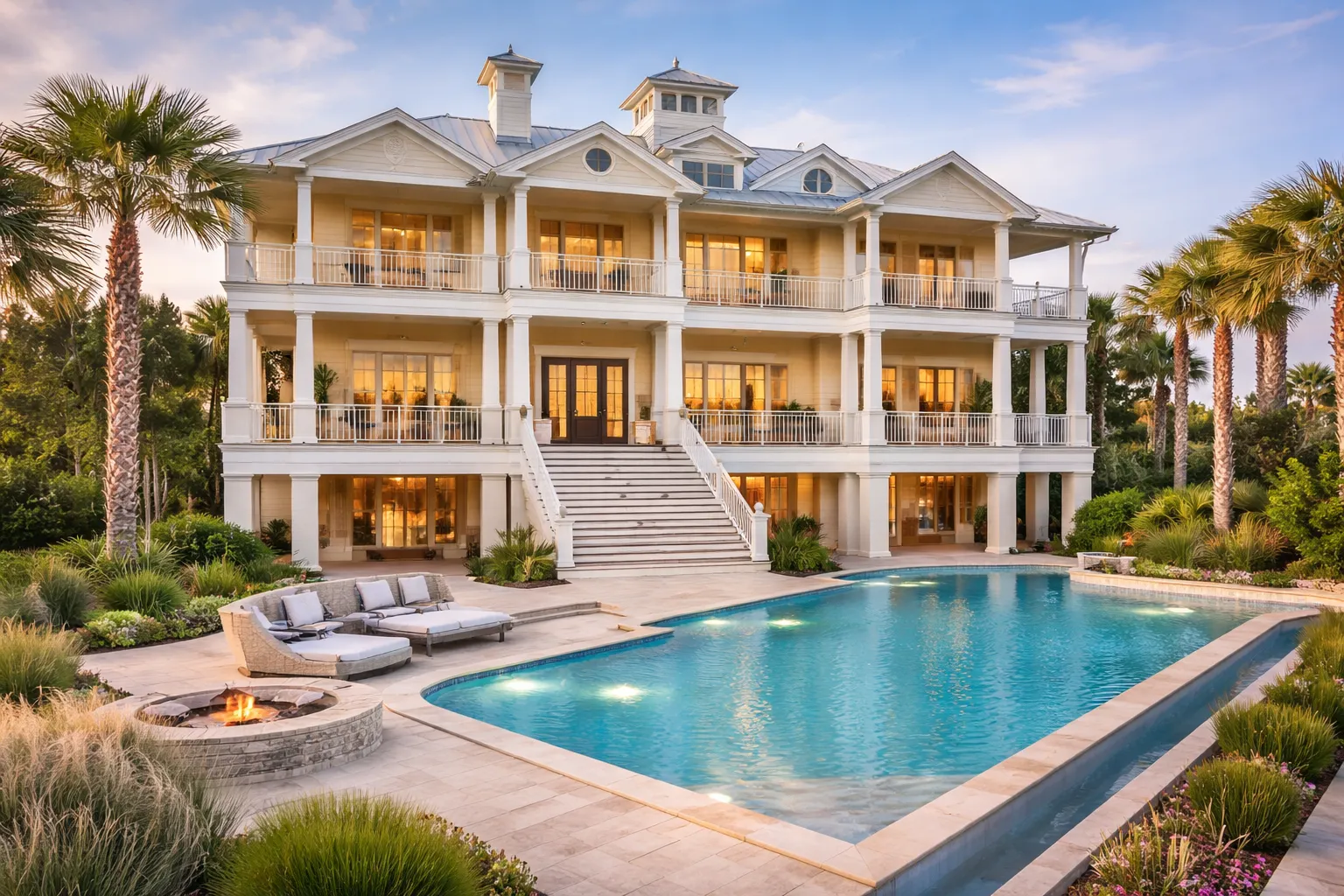 - Grand covered porches, balconies, and lanais for indoor–outdoor living