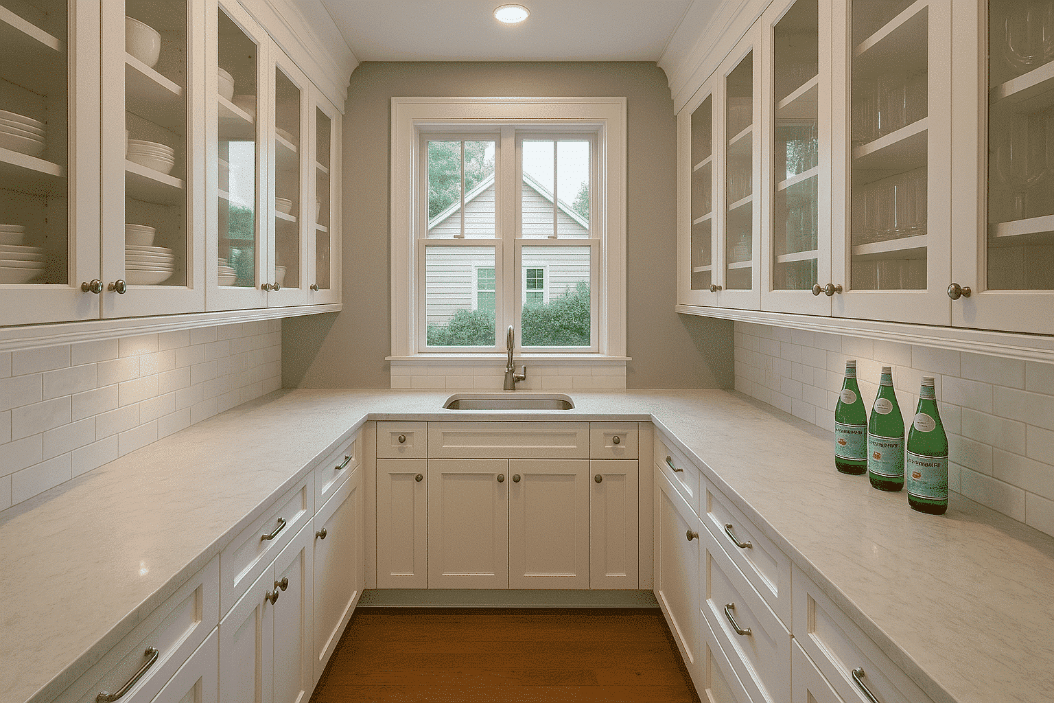 A butler’s pantry is often located between the kitchen and dining room and may include counters, cabinets, and prep space, while a walk-in pantry focuses primarily on storage.