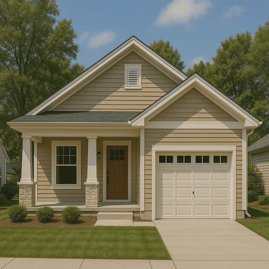 Many small home plans include attached or detached garages, carports, or storage options.