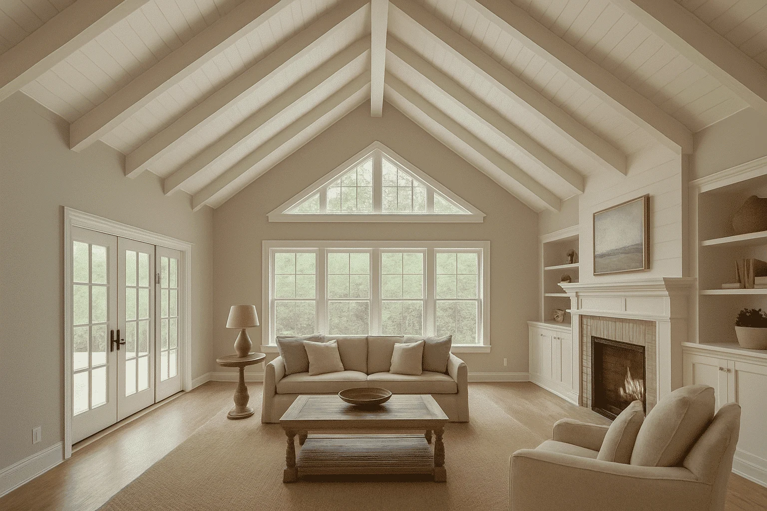 A vaulted ceiling rises above the standard flat ceiling height, often sloping upward to create a sense of openness and drama.