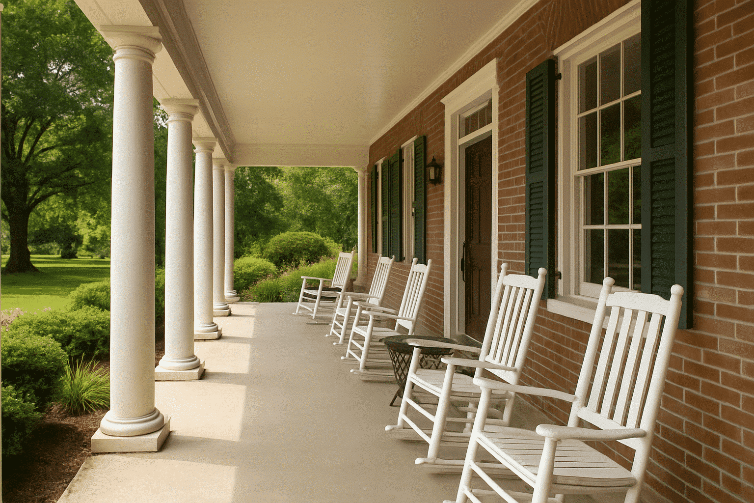 A veranda is a roofed, open-air porch often extending along the front or sides of a home.