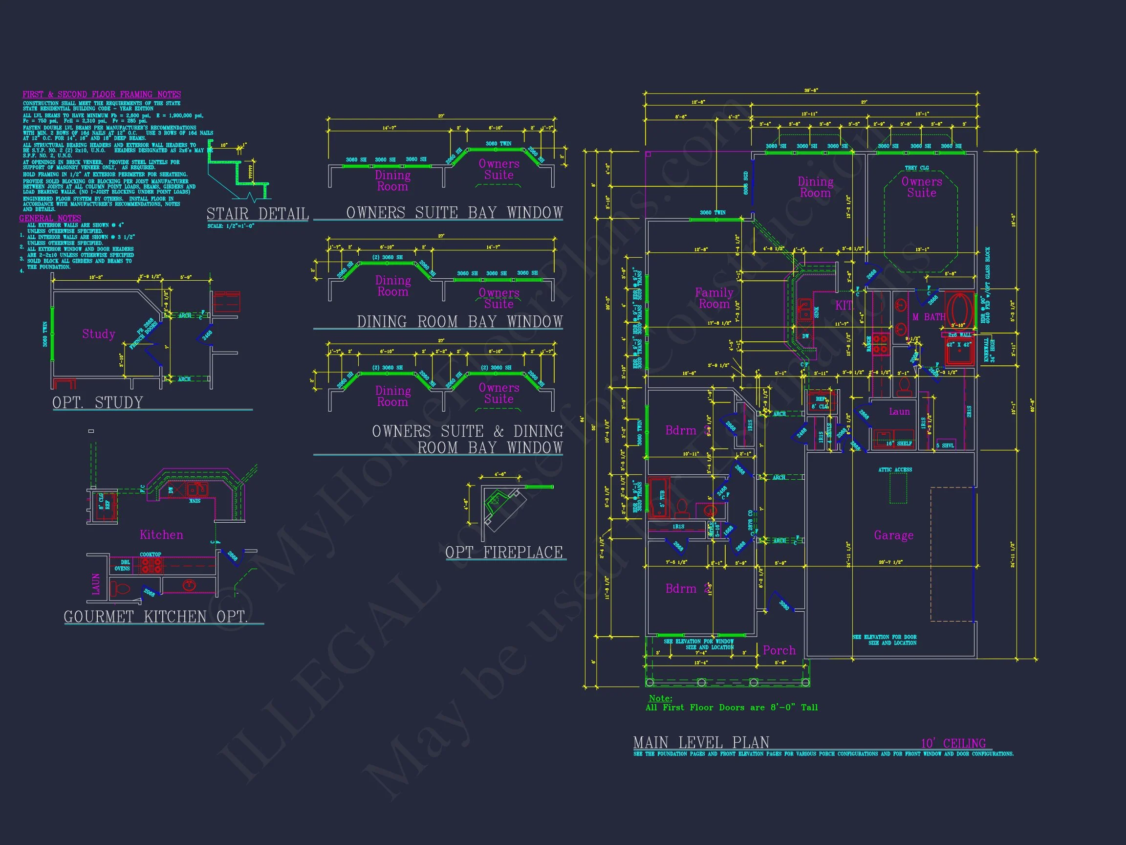 Every load-bearing wall is highlighted, which let the framer lay out plates in record time.