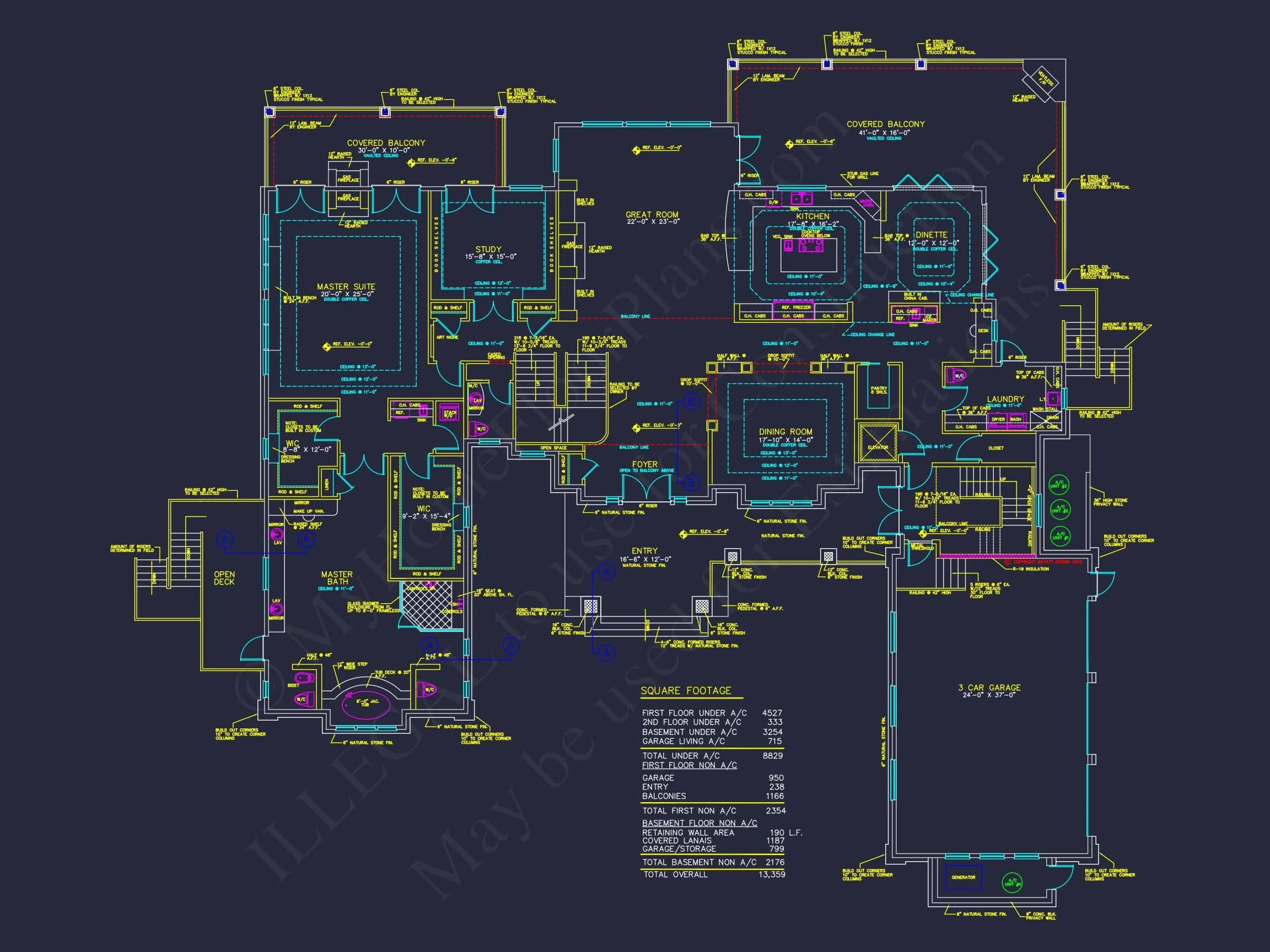 - Heated area: 8,829 sq. ft. across three finished levels.