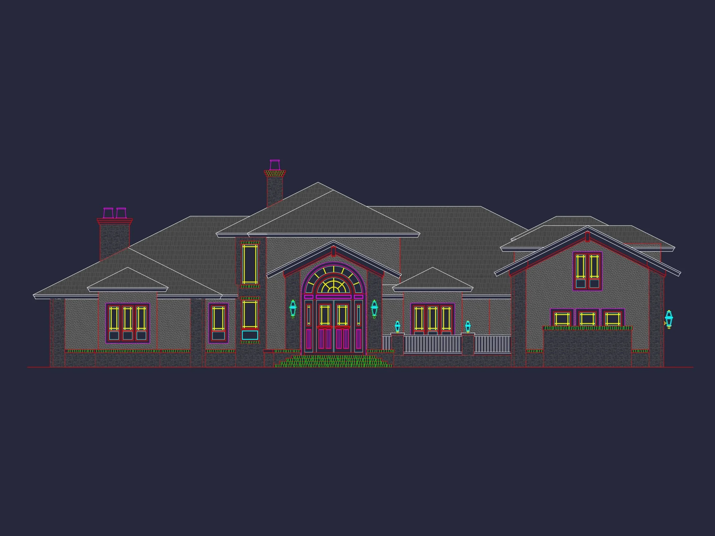5 bed • 6 bath • 8,829 SF. Soaring windows, elevator & wine room. Includes CAD+PDF + unlimited build license. Start your build today.
