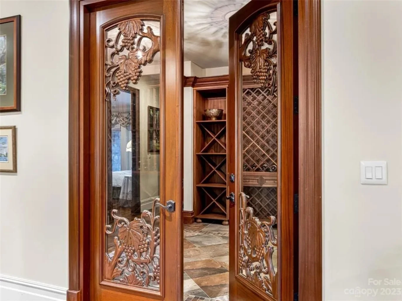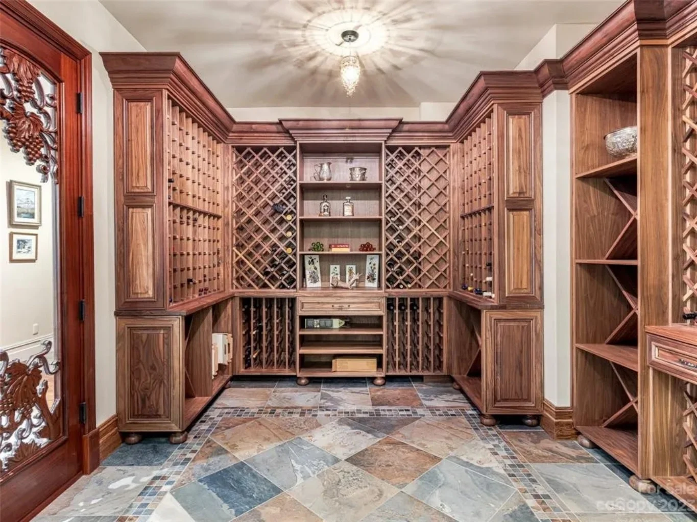 - Wine room with custom storage design potential.