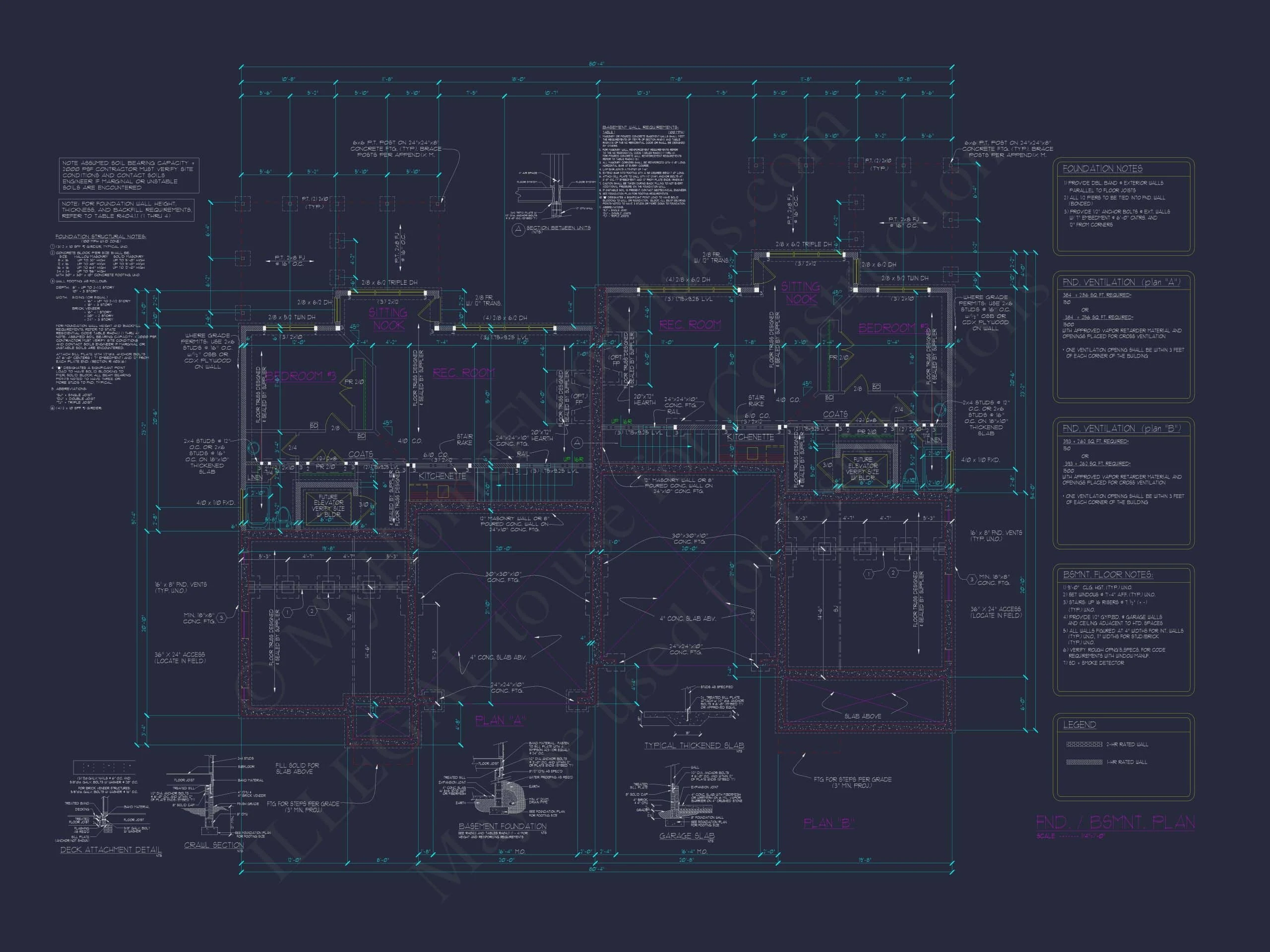 - Basement level with recreation rooms for each unit.