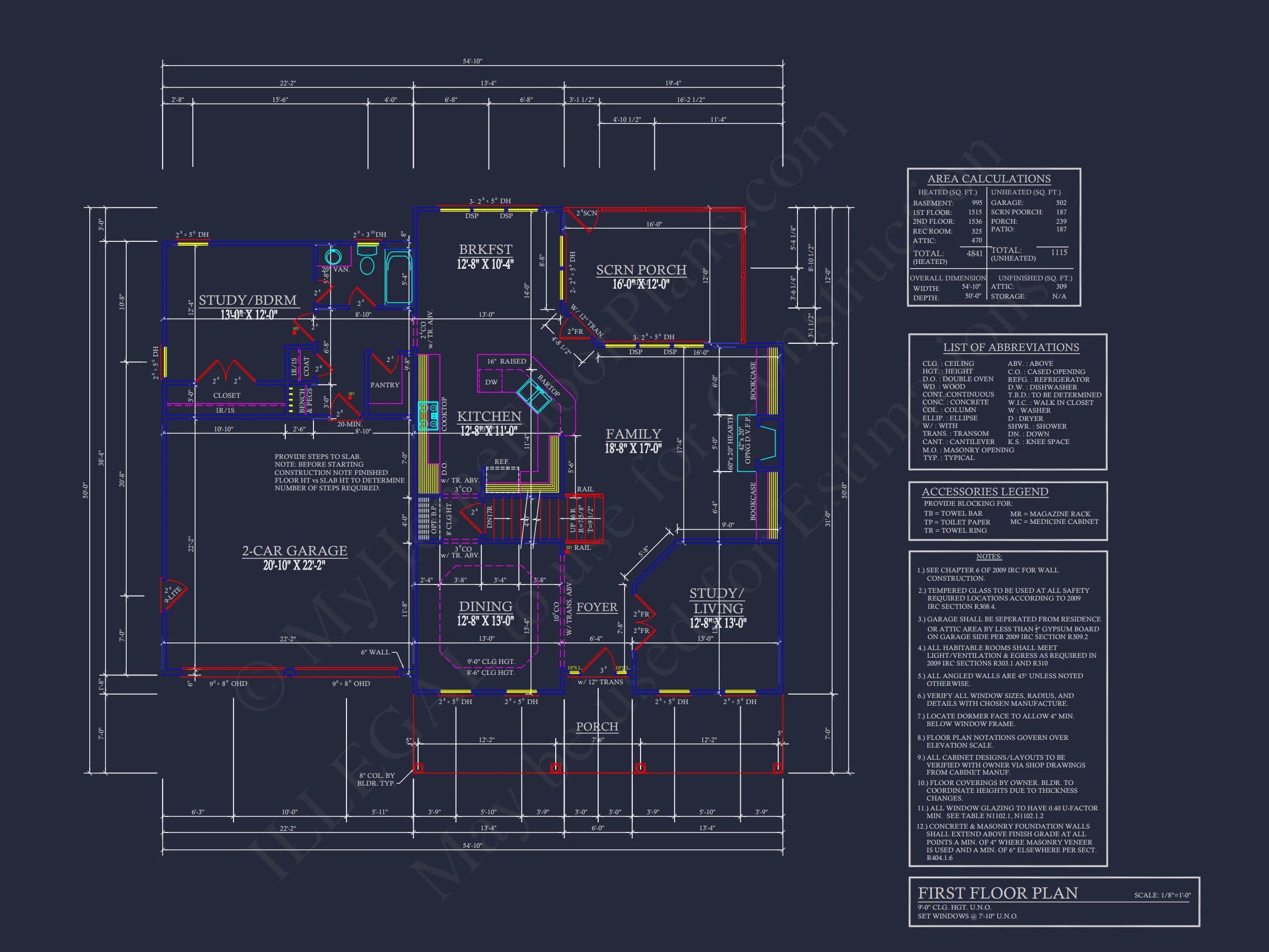 My Home Floor Plans, Inc. does not assume liability for any deviations in the plans. All information must be confirmed by your contractor prior to construction. Dimensions govern over scale.