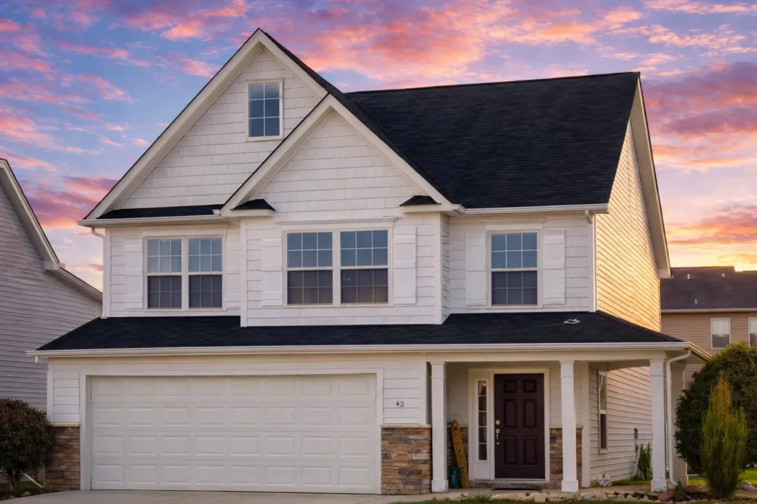 - Traditional two-story massing with clean rooflines