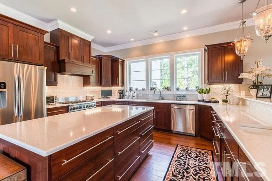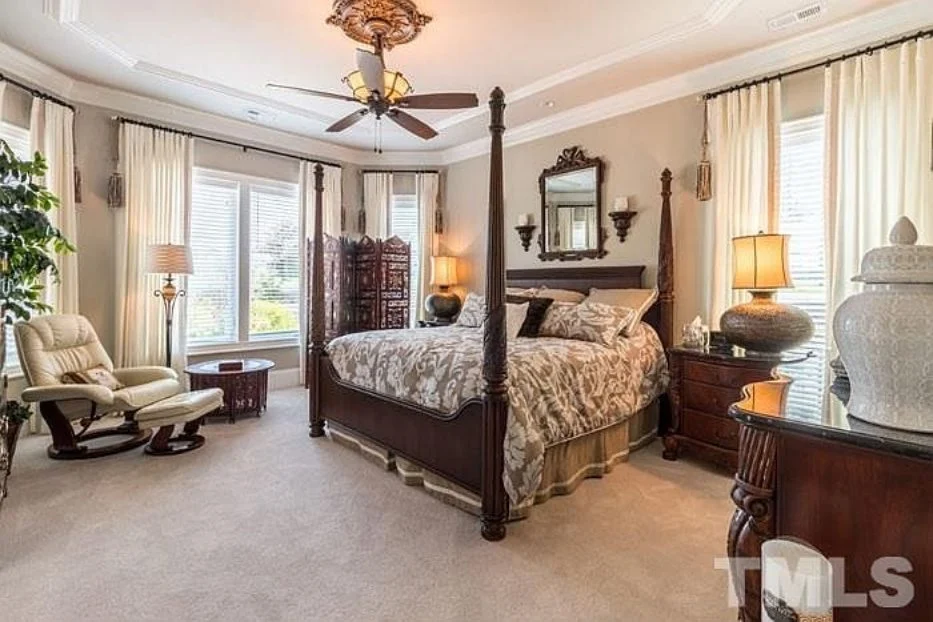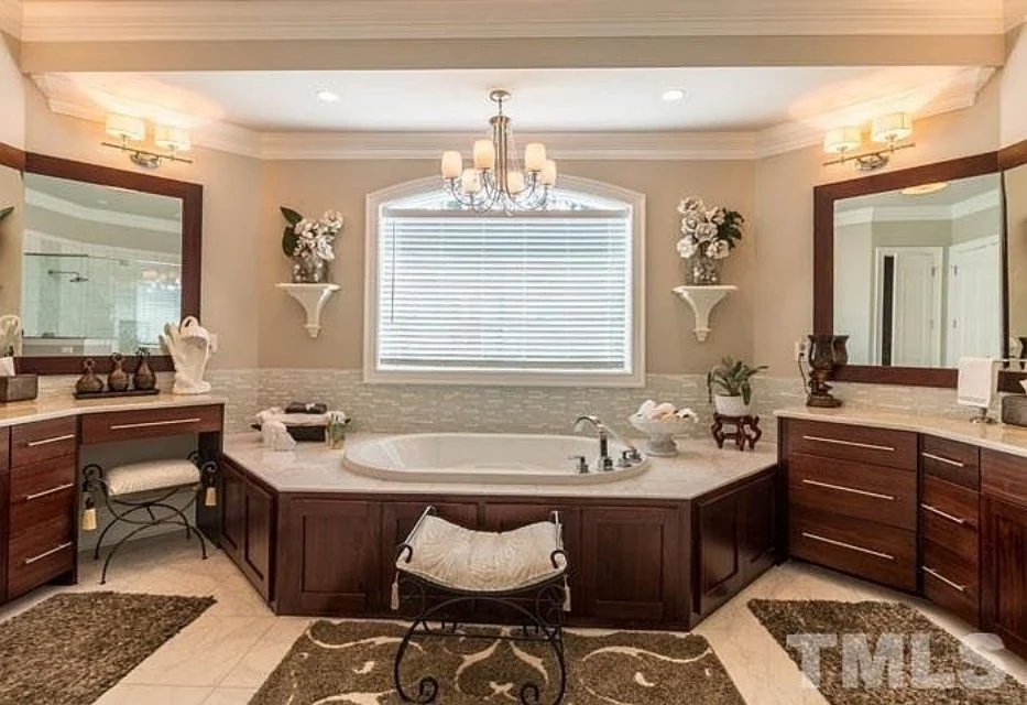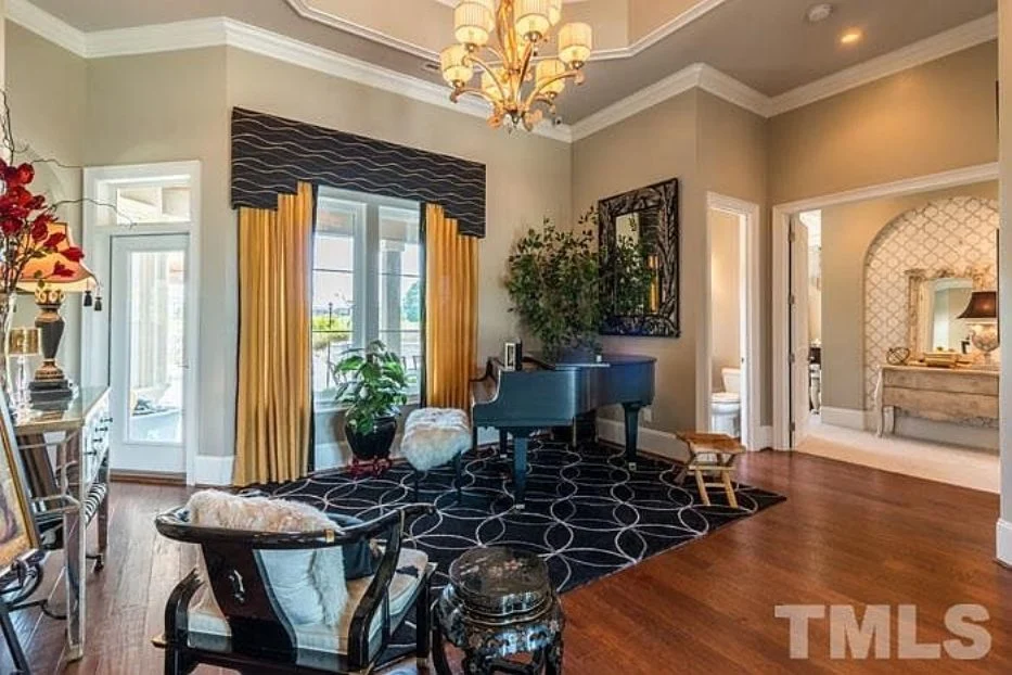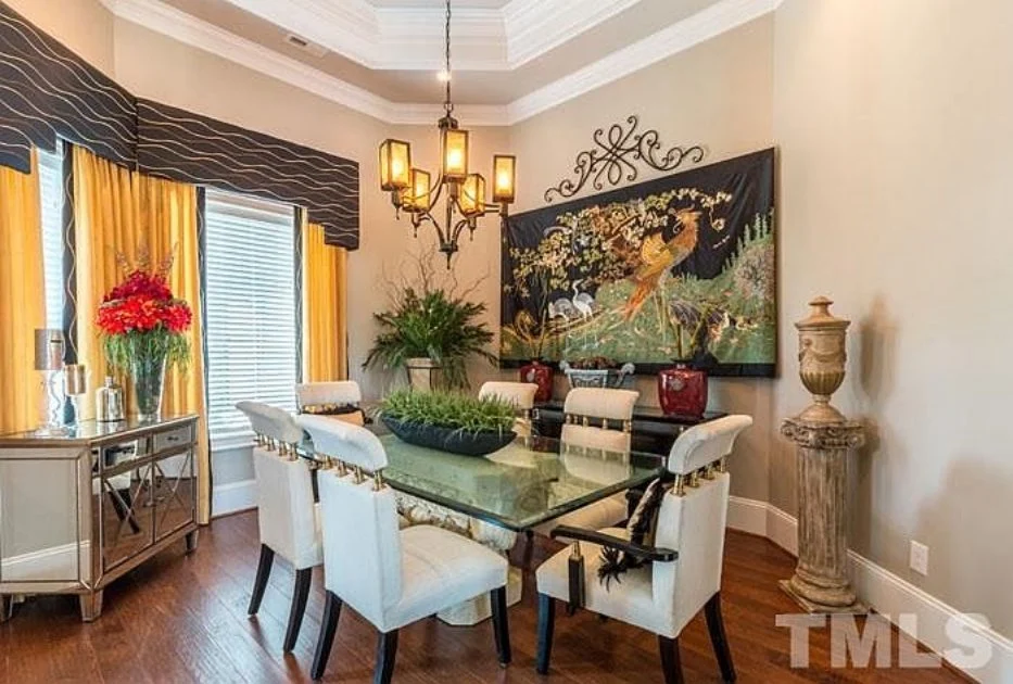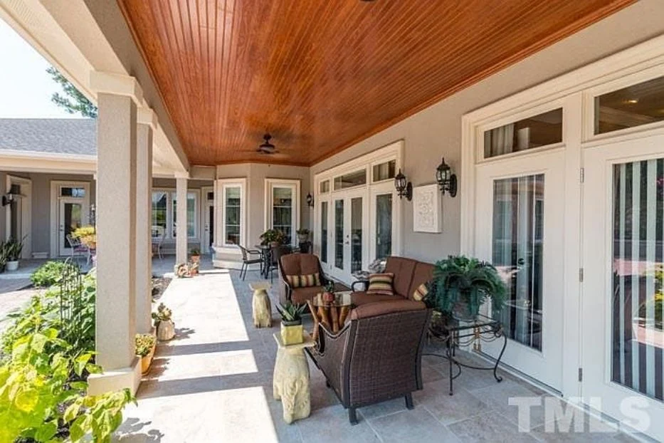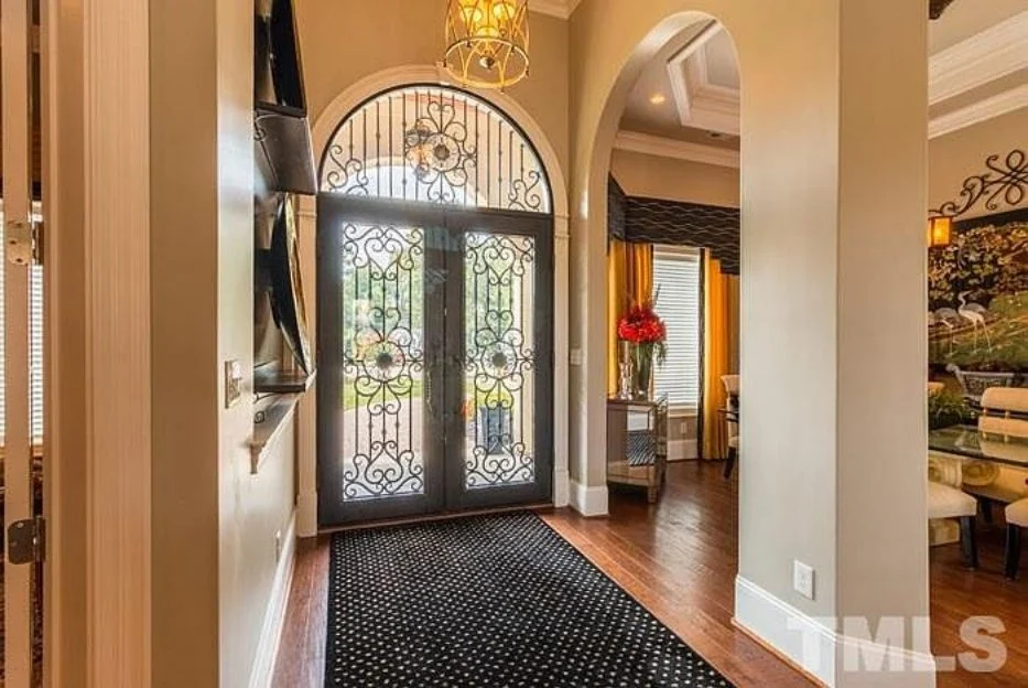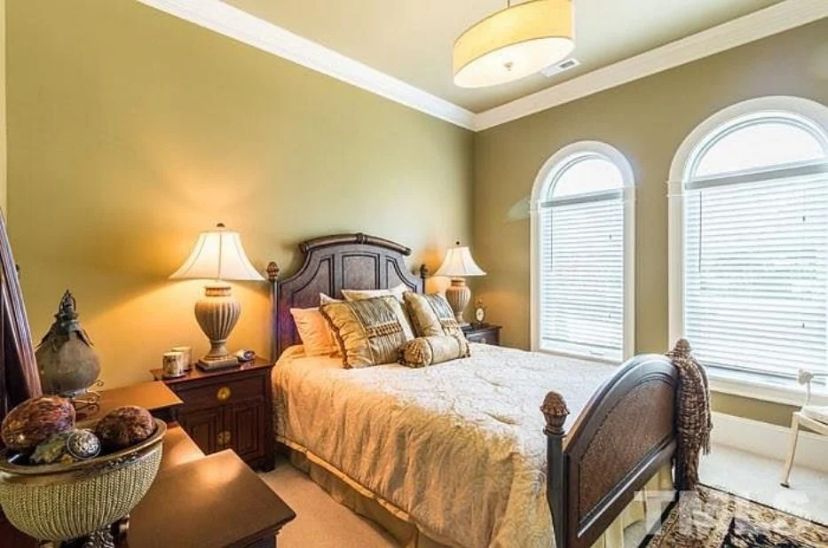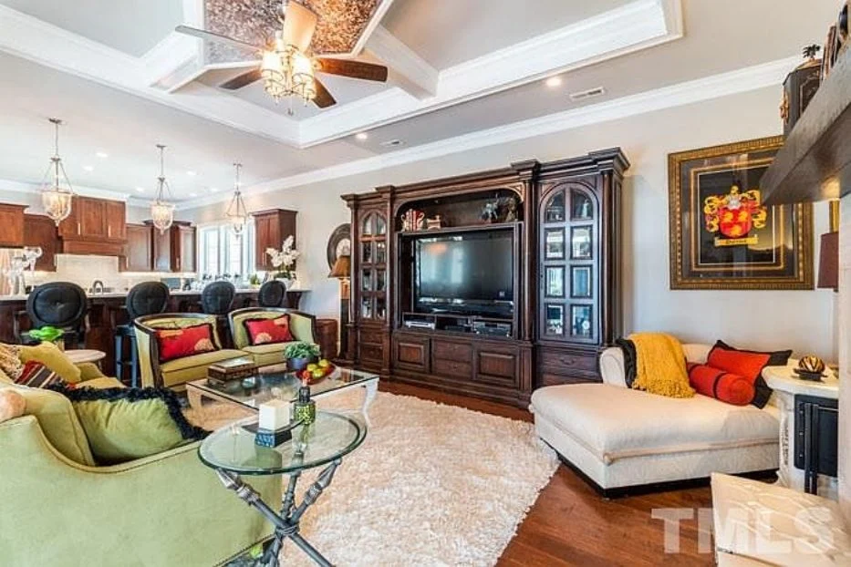 - Vaulted ceilings and coffered detailing add elegance and height.