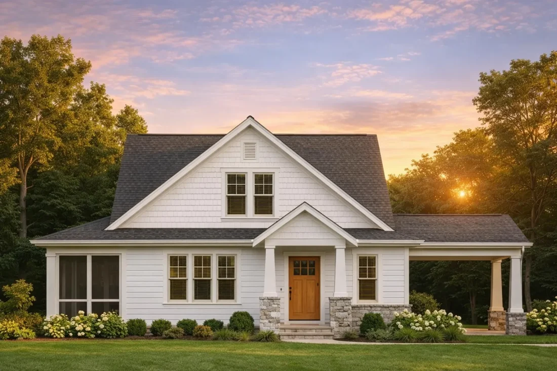 Craftsman Cottage Home Plan | Elegant Stone & Shake Exterior