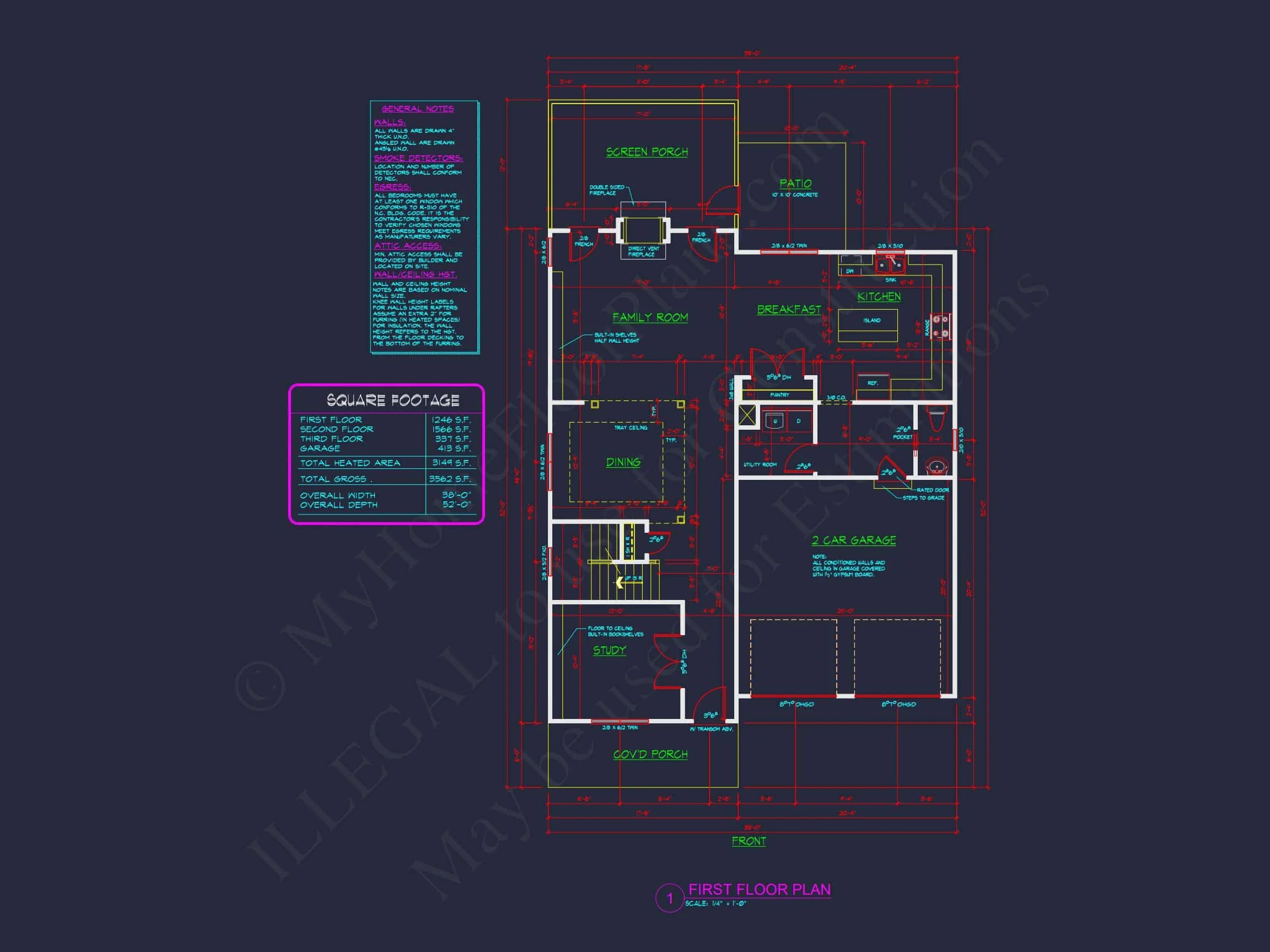 My Home Floor Plans, Inc. does not assume liability for any deviations in the plans. All information must be confirmed by your contractor prior to construction. Dimensions govern over scale.
