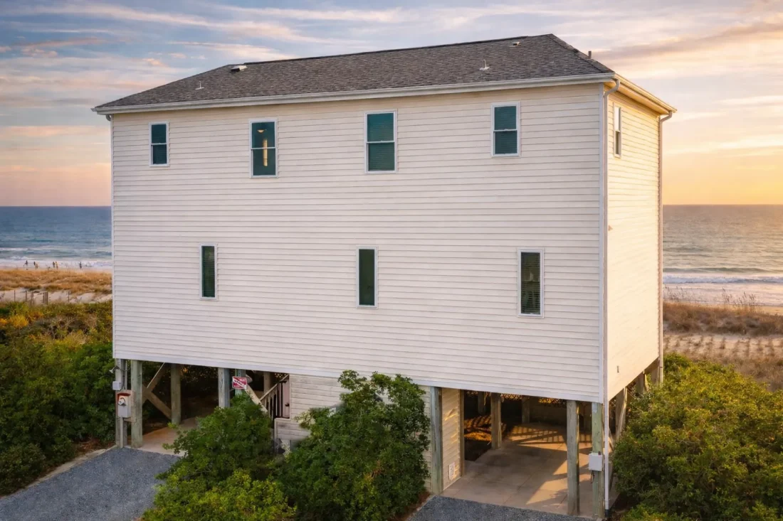 Material selection plays a crucial role in coastal performance. Horizontal siding offers a classic beach-house look while allowing homeowners to choose fiber cement, engineered wood, or other coastal-rated products. The straightforward roof form simplifies construction and improves long-term resilience.