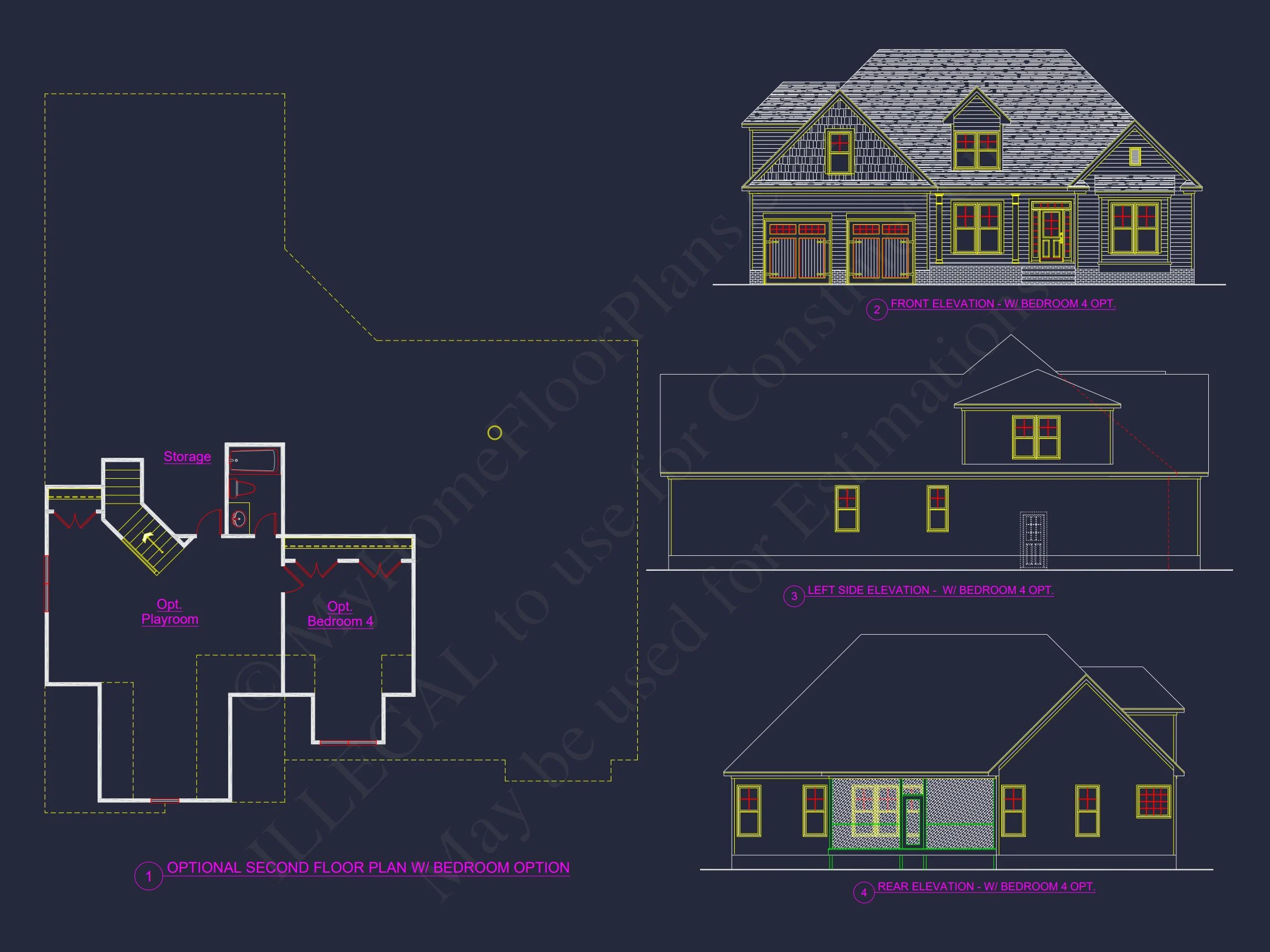 Explore this Craftsman house plan with a flexible layout, CAD blueprints, and unique designs. Includes 4 bedrooms, optional second-floor playroom, and porch options.