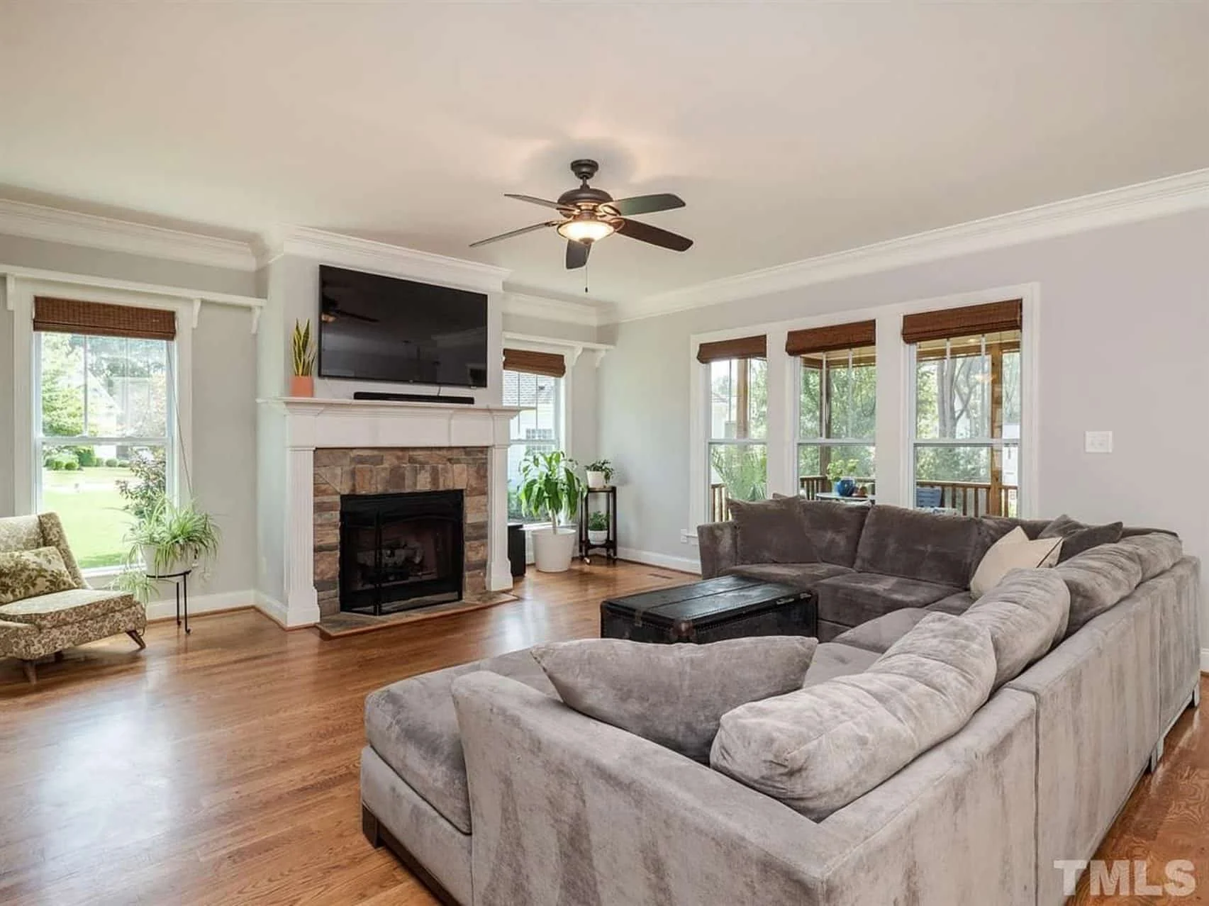 - Unheated extras: 1,091 sq. ft. including porches, garage, and bonus spaces.