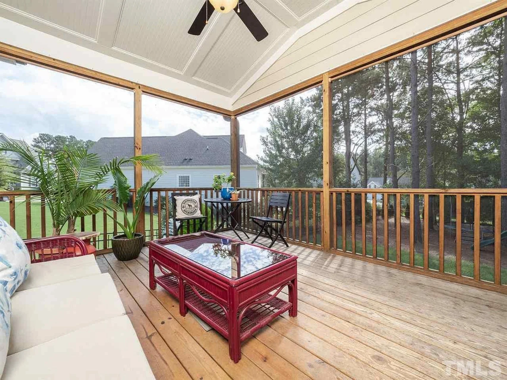 - Covered front porch and screened rear porch for seasonal outdoor enjoyment.