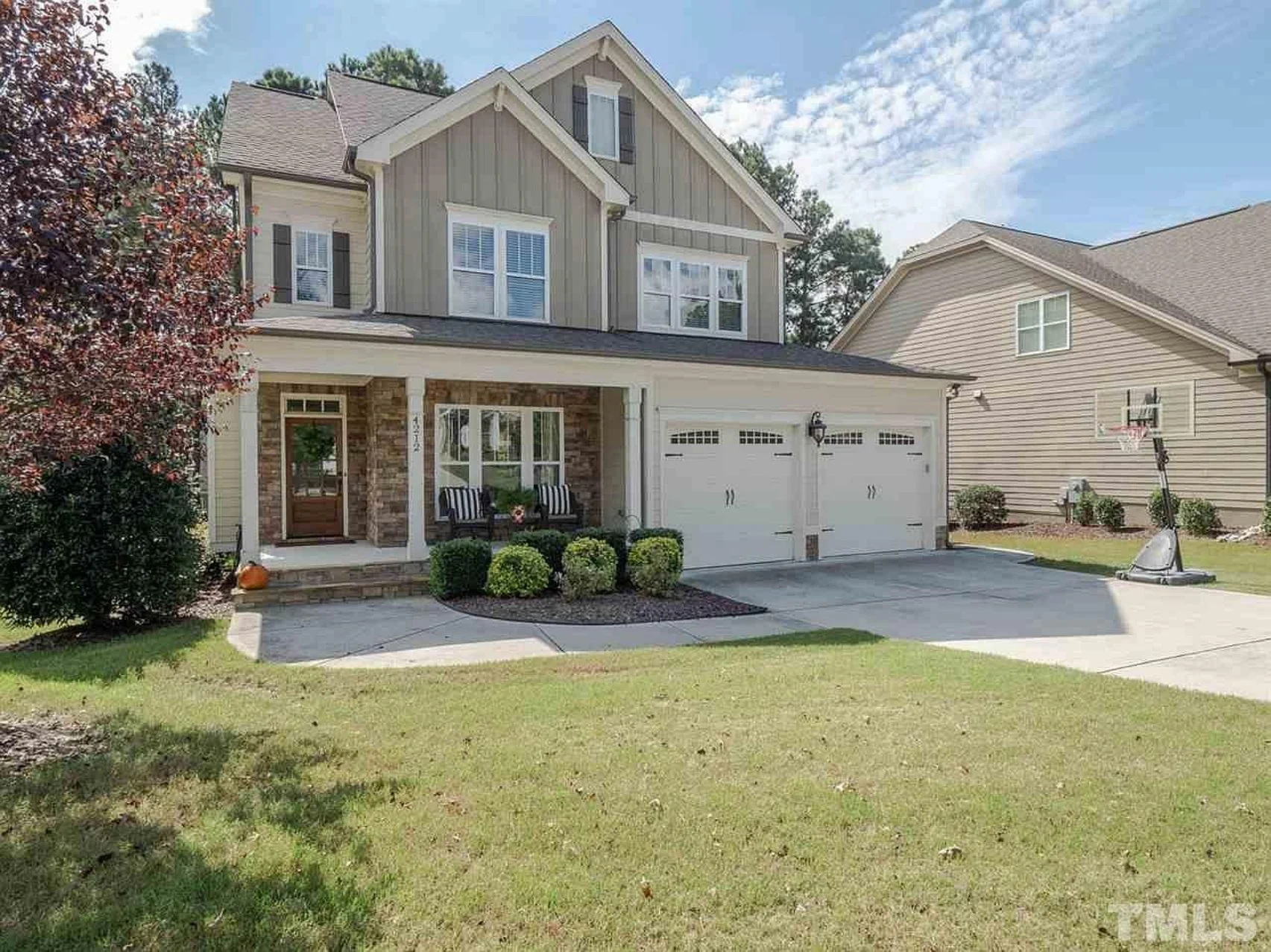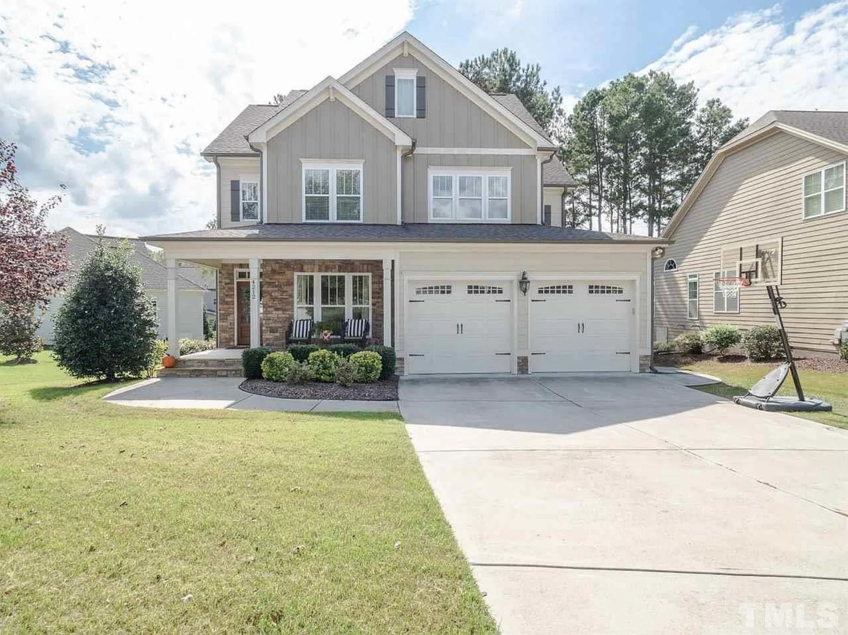 - Exterior materials include stone accents, board and batten siding, and cement/concrete finishes for lasting style.