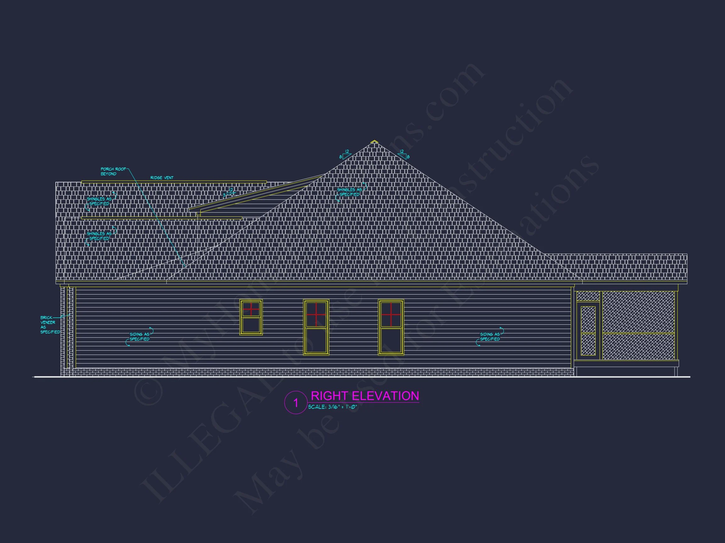 3 bed, 2 bath, 2,268 sq ft ranch-craftsman plan with porches, bonus room, office, 2-car garage, attic storage, CAD + PDF files & unlimited build license. Build today!
