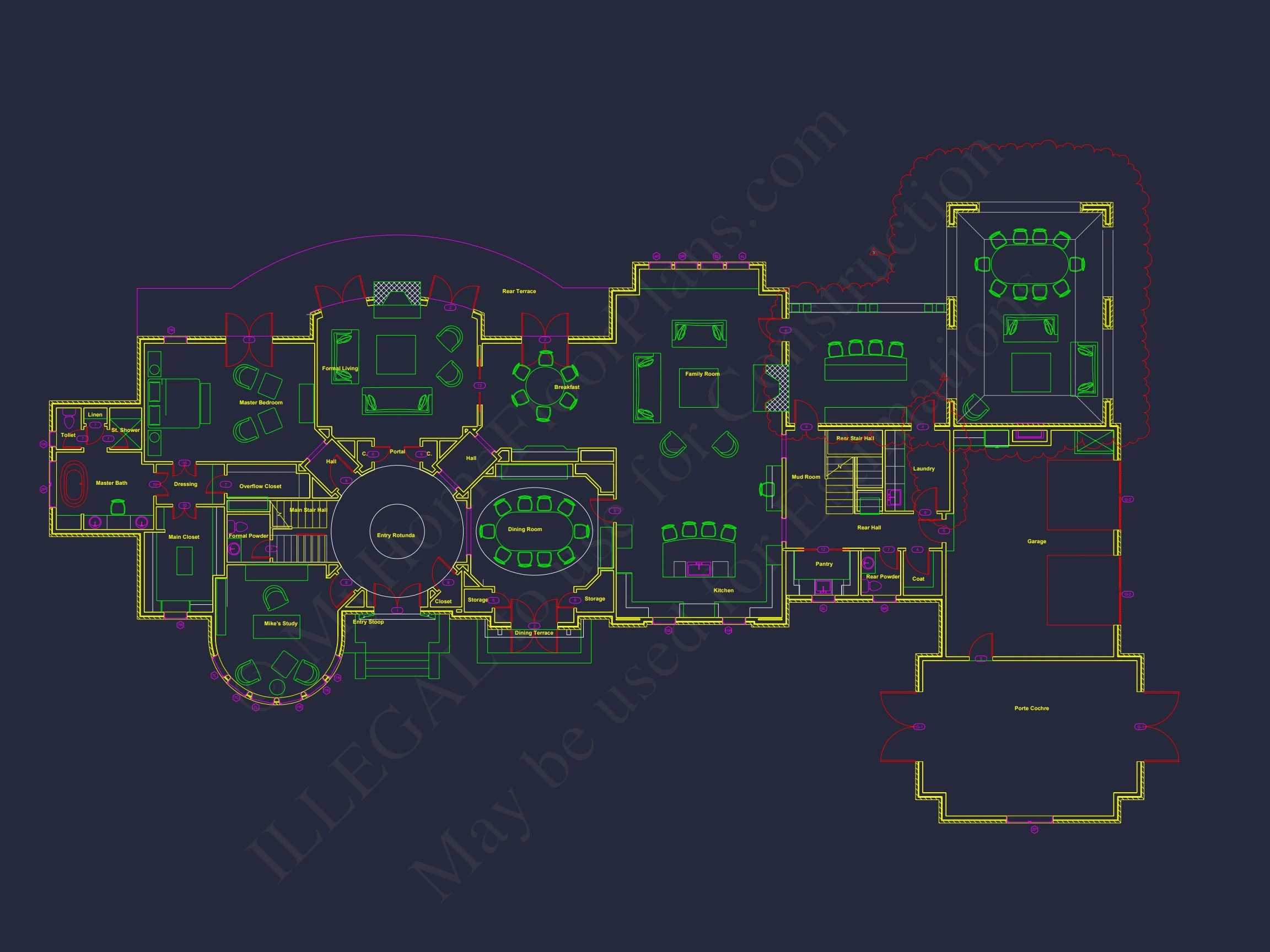 11-1920 HOUSE PLAN – French Provincial Home Plan – 5-Bed, 6-Bath, 7,701 SF