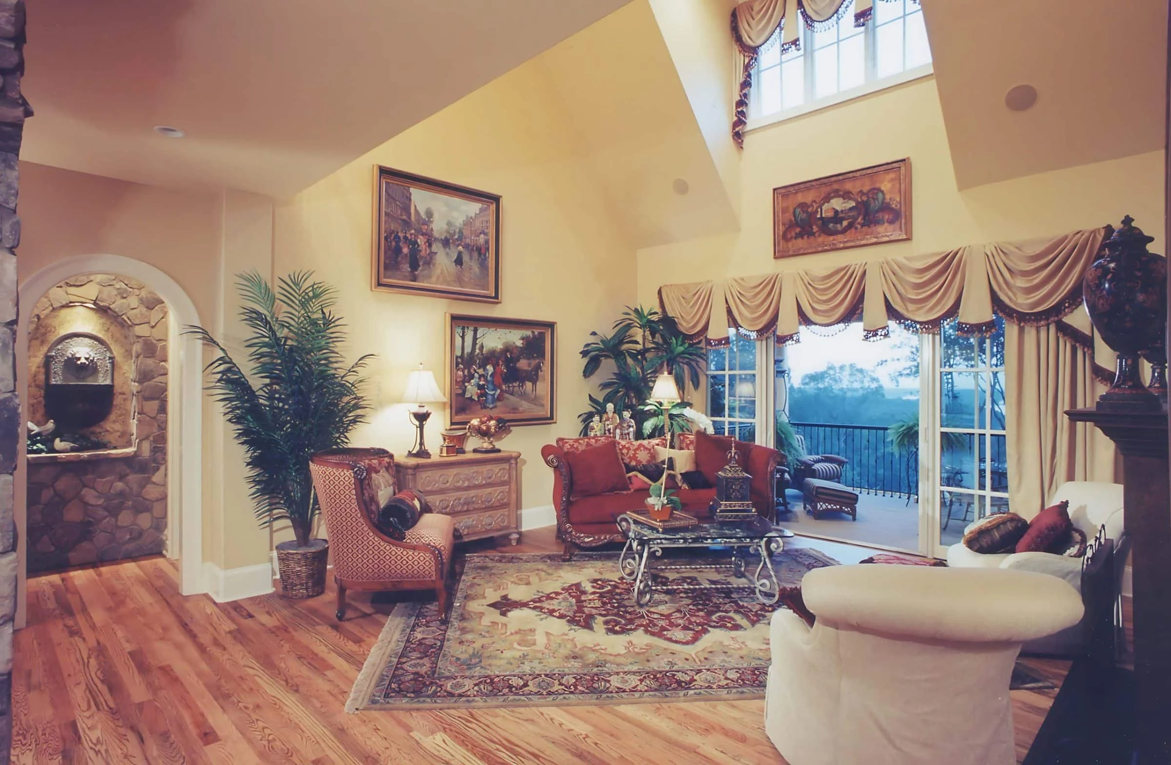 - Vaulted ceilings and 9’+ ceilings throughout bring a grand, open feel.