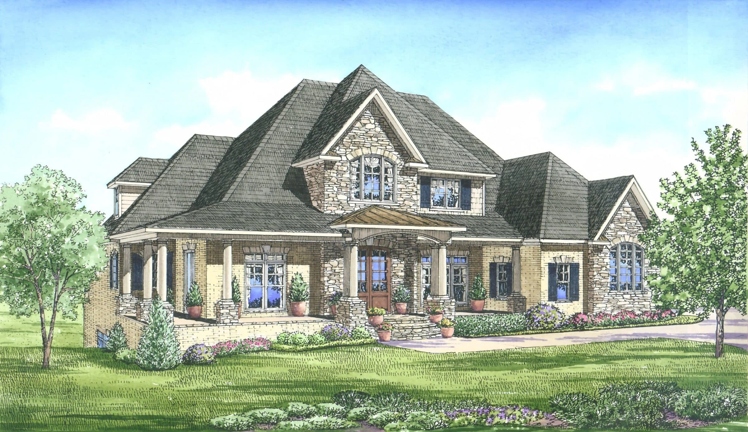- Brick, shake, stone, and stucco exterior materials embody timeless Southern and European elegance.