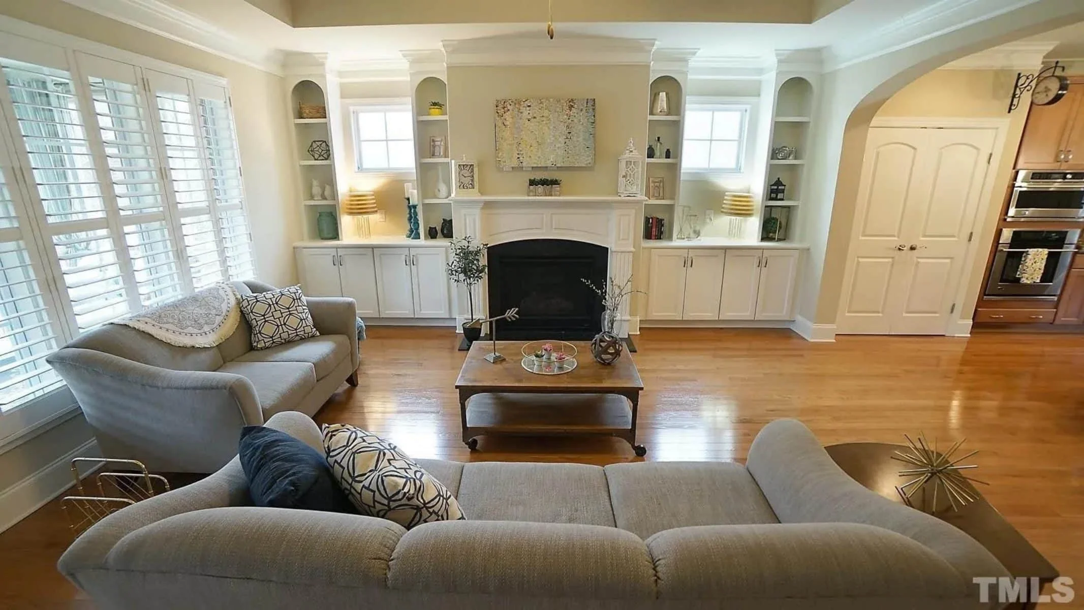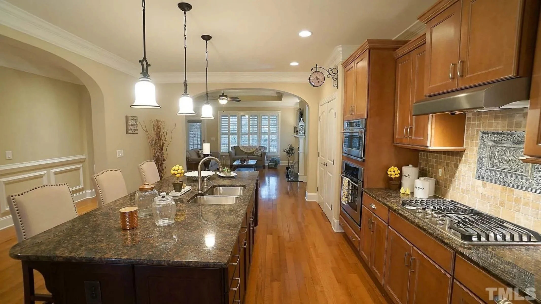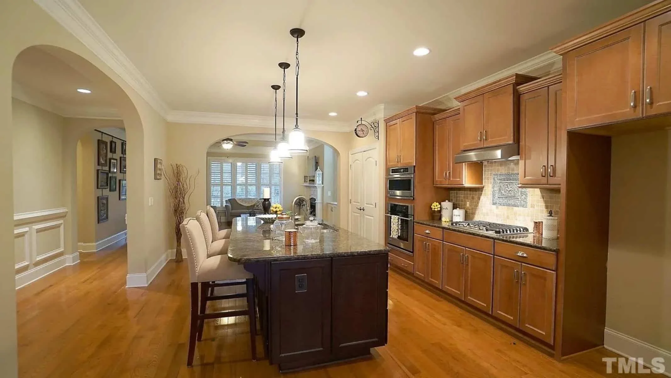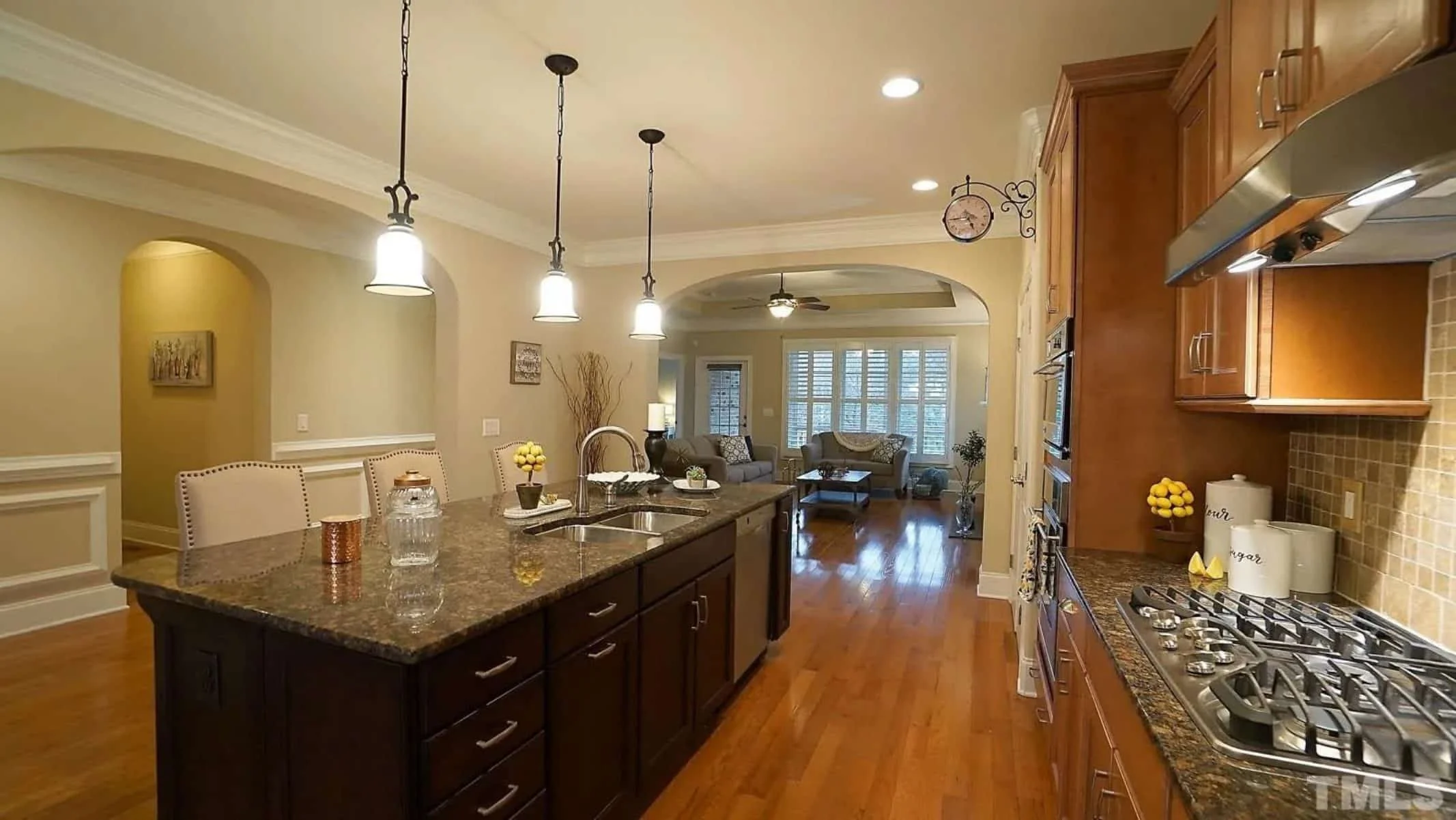 - Tray ceilings in the family room and dining space.