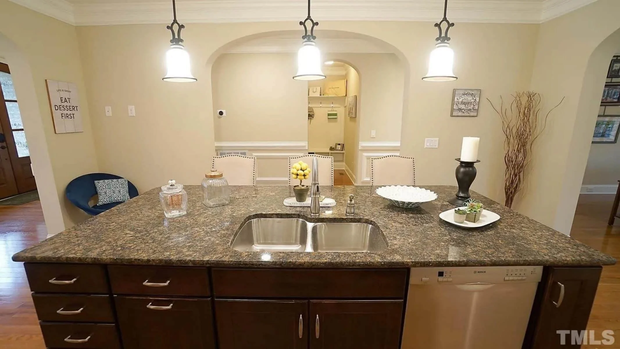 - Kitchen island, walk-in pantry, and breakfast nook create a perfect chef’s kitchen.