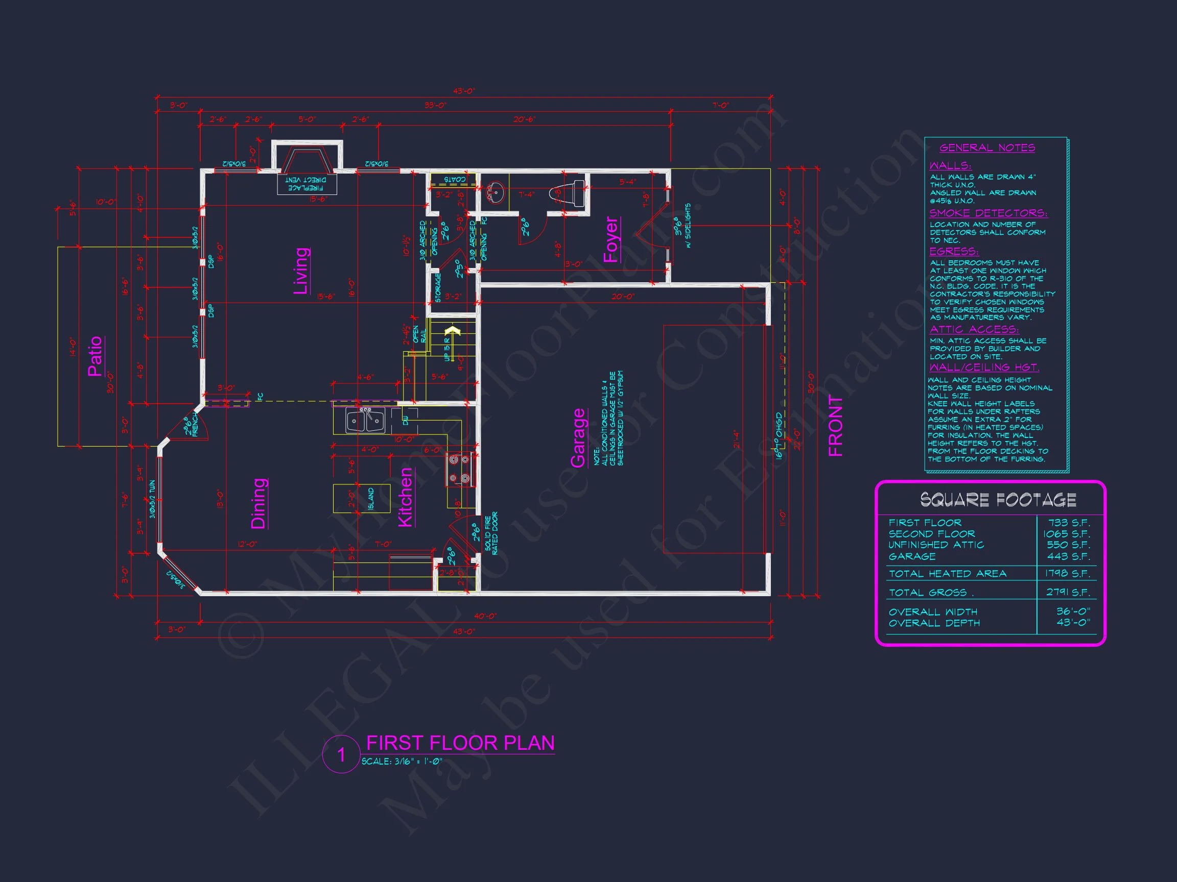 My Home Floor Plans, Inc. does not assume liability for any deviations in the plans. All information must be confirmed by your contractor prior to construction. Dimensions govern over scale.