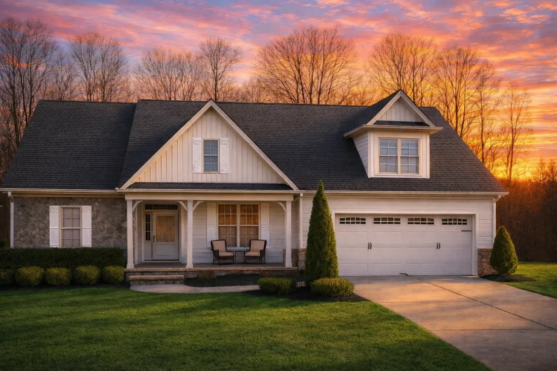 - Stone and board-and-batten siding for enhanced texture and curb appeal.