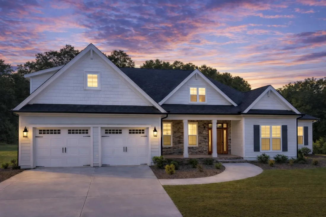 The New American style has become one of the most popular residential architectural categories in recent years. It merges classic American forms—gabled roofs, symmetrical massing, and welcoming front porches—with modern materials, simplified trim, and open interiors.