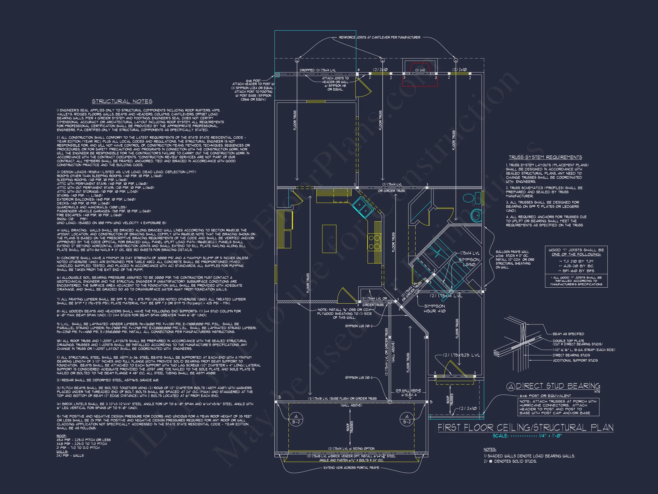 - Structural Engineering – Included with every plan unless not shown in the product images. Very helpful and reduces engineering time dramatically for any state. *All plans must be approved by engineer licensed in state of build*