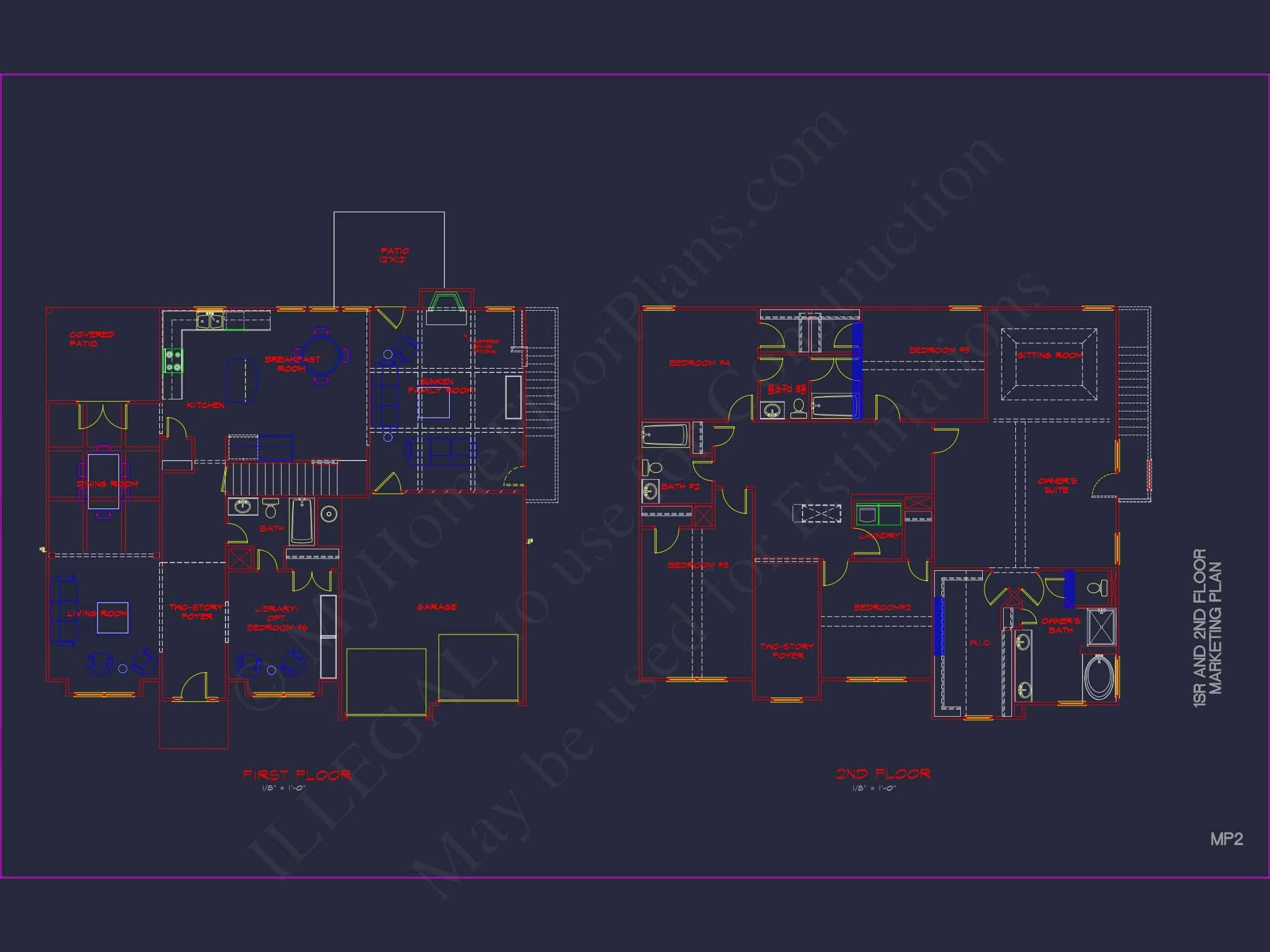 Classic Suburban Home Plan: 6-Bedroom Layout with CAD Blueprints