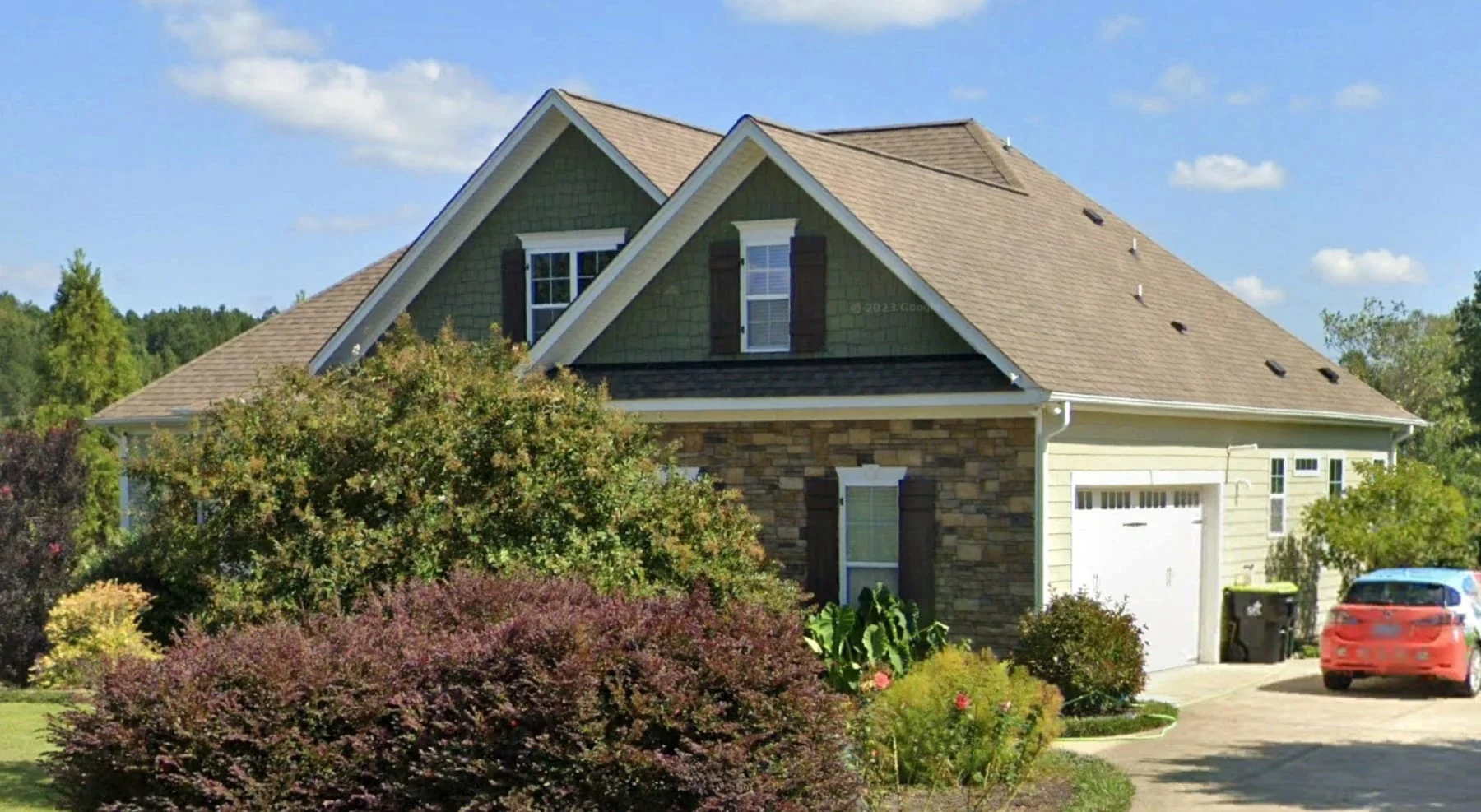 - Craftsman exterior with shake siding and stone accents for lasting curb appeal.