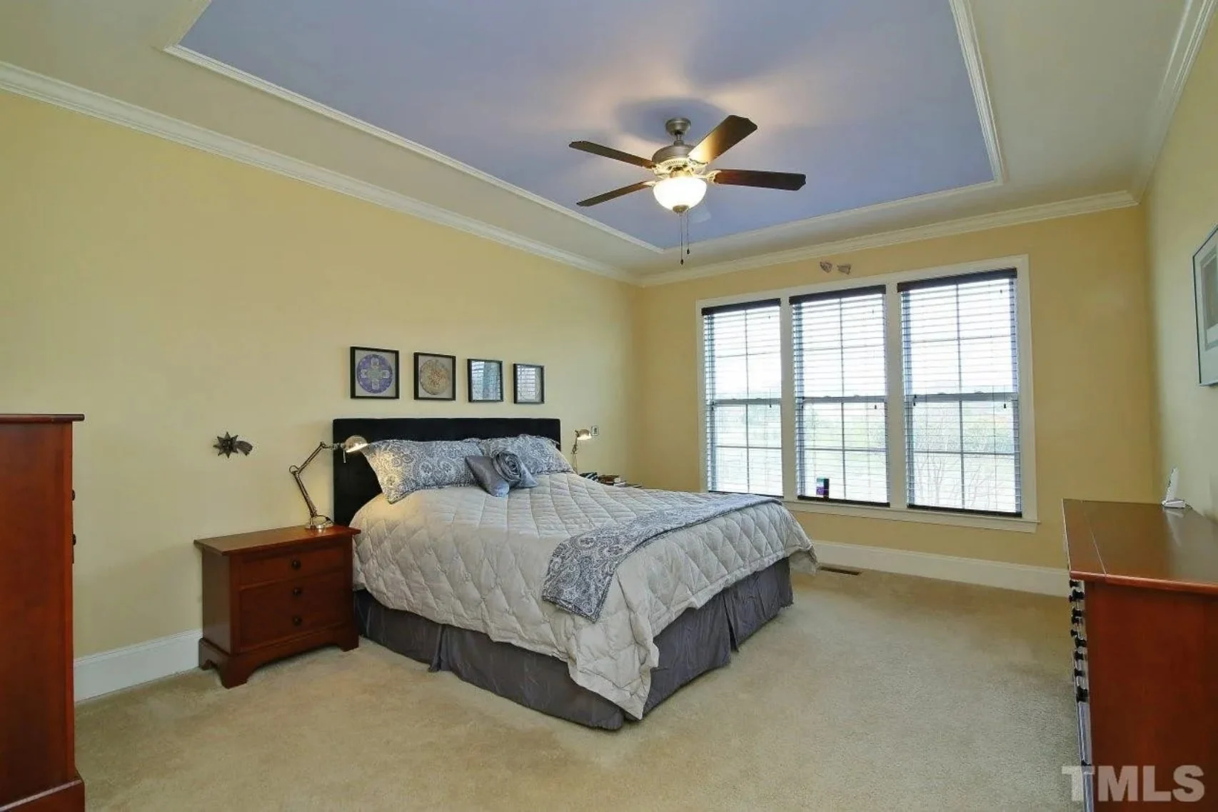 - High 9ft+ ceilings and coffered detailing offer architectural elegance.