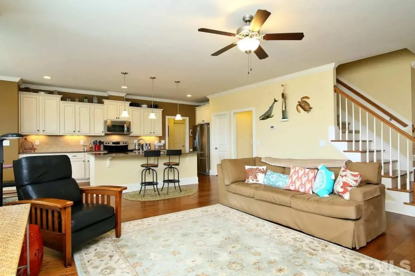 - Kitchen island and butler’s pantry enhance everyday use and entertaining.