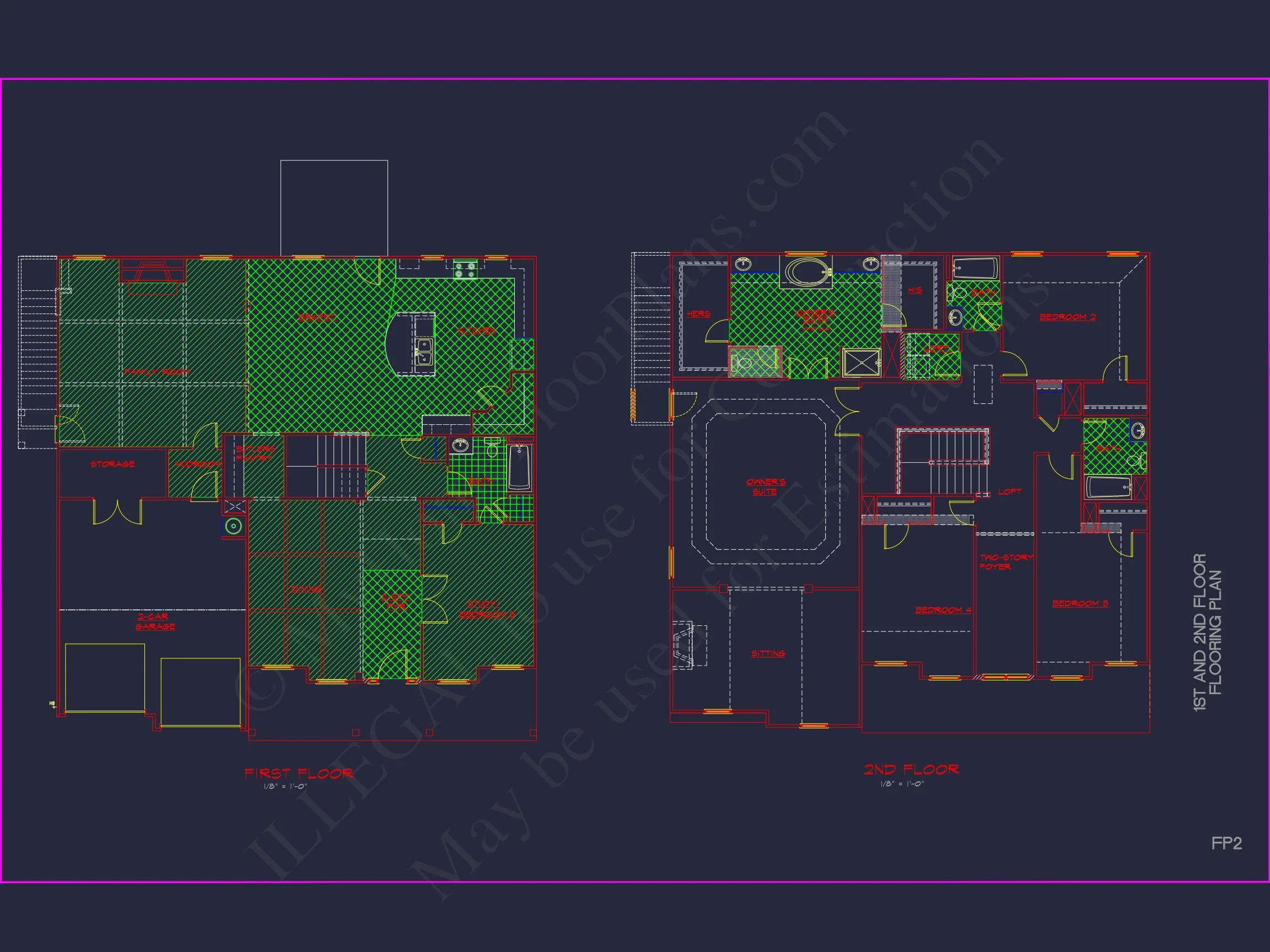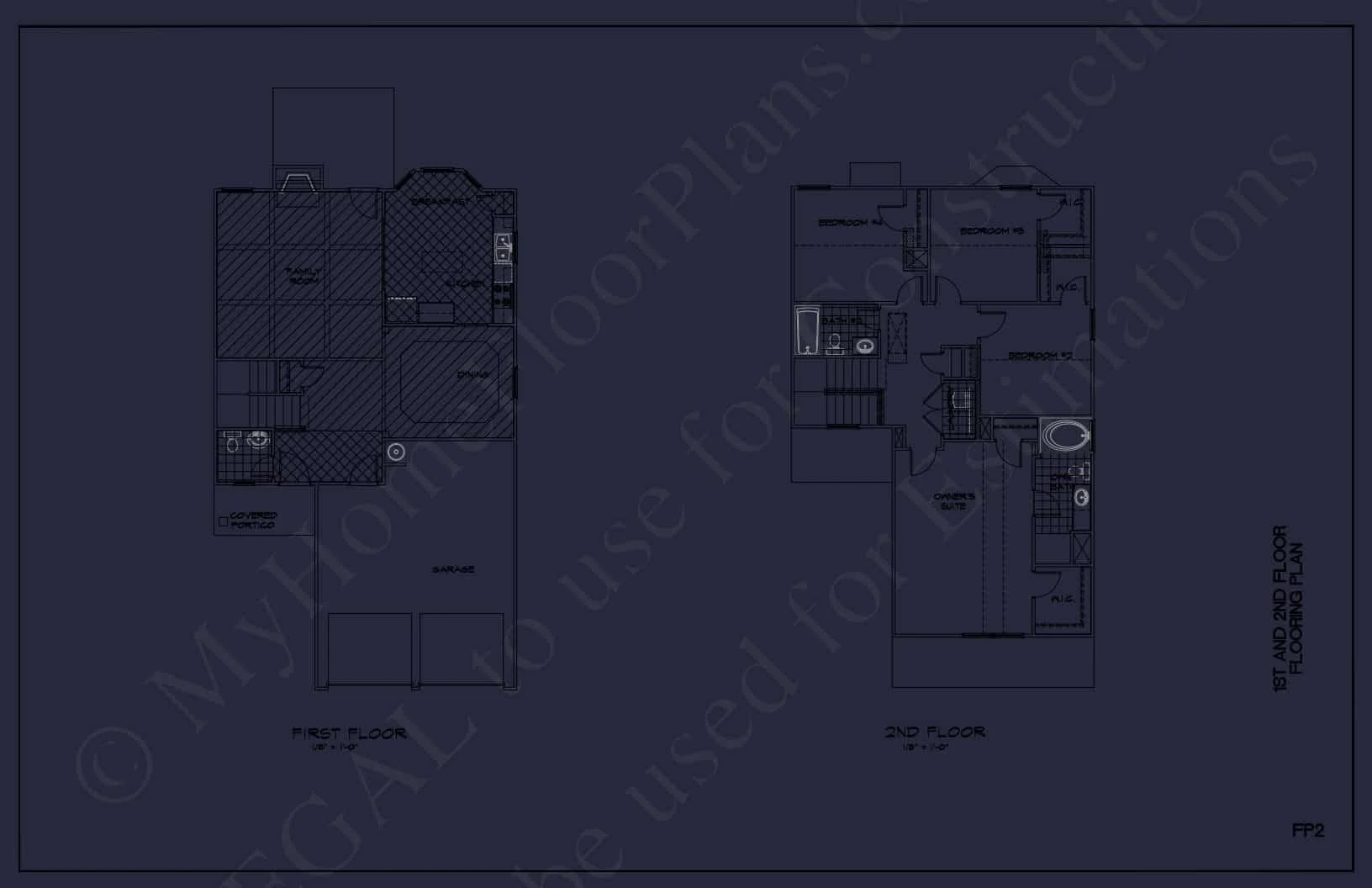 Explore a 2-story house plan with CAD blueprints, featuring 4 bedrooms, 3 bathrooms, a family room, and a bonus room. Perfect for designers and builders.