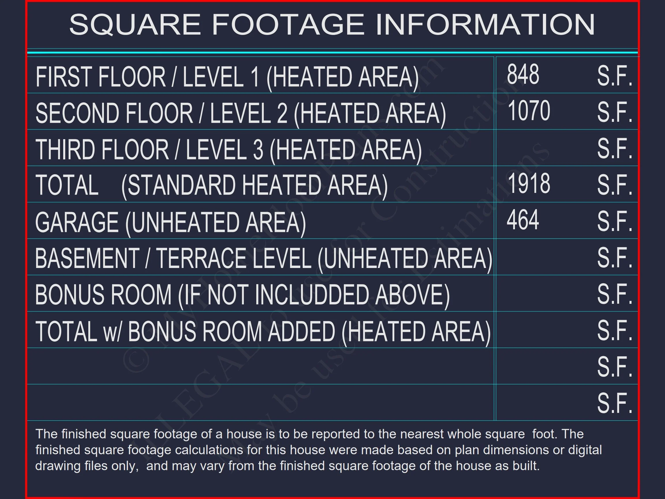 My Home Floor Plans, Inc. does not assume liability for any deviations in the plans. All information must be confirmed by your contractor prior to construction. Dimensions govern over scale.