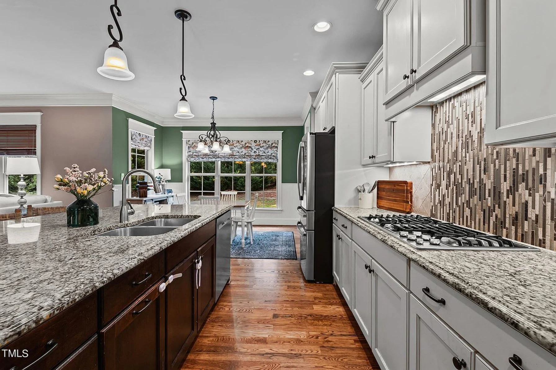 - Open floor plan connects the kitchen, dining area, and family room for easy entertaining. View open layouts.