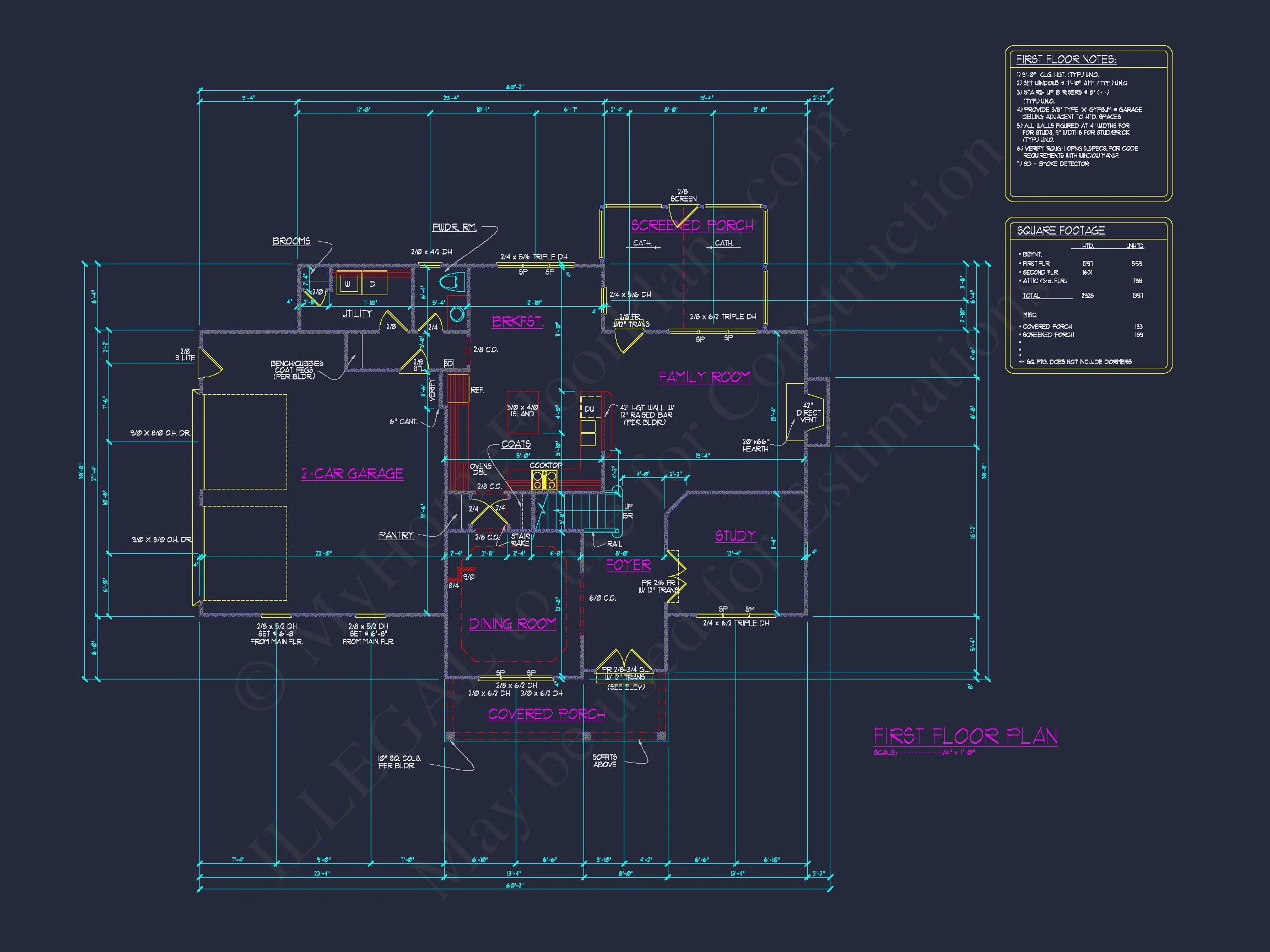 My Home Floor Plans, Inc. does not assume liability for any deviations in the plans. All information must be confirmed by your contractor prior to construction. Dimensions govern over scale.