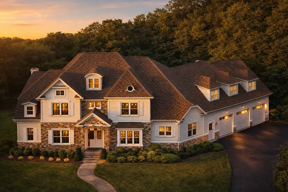 - Architectural asphalt shingle roof with complex rooflines