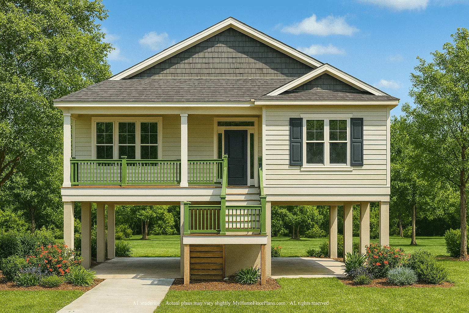 Is this suitable for a sloped or coastal lot? Yes, the pier foundation is ideal for coastal terrain and flood zones.