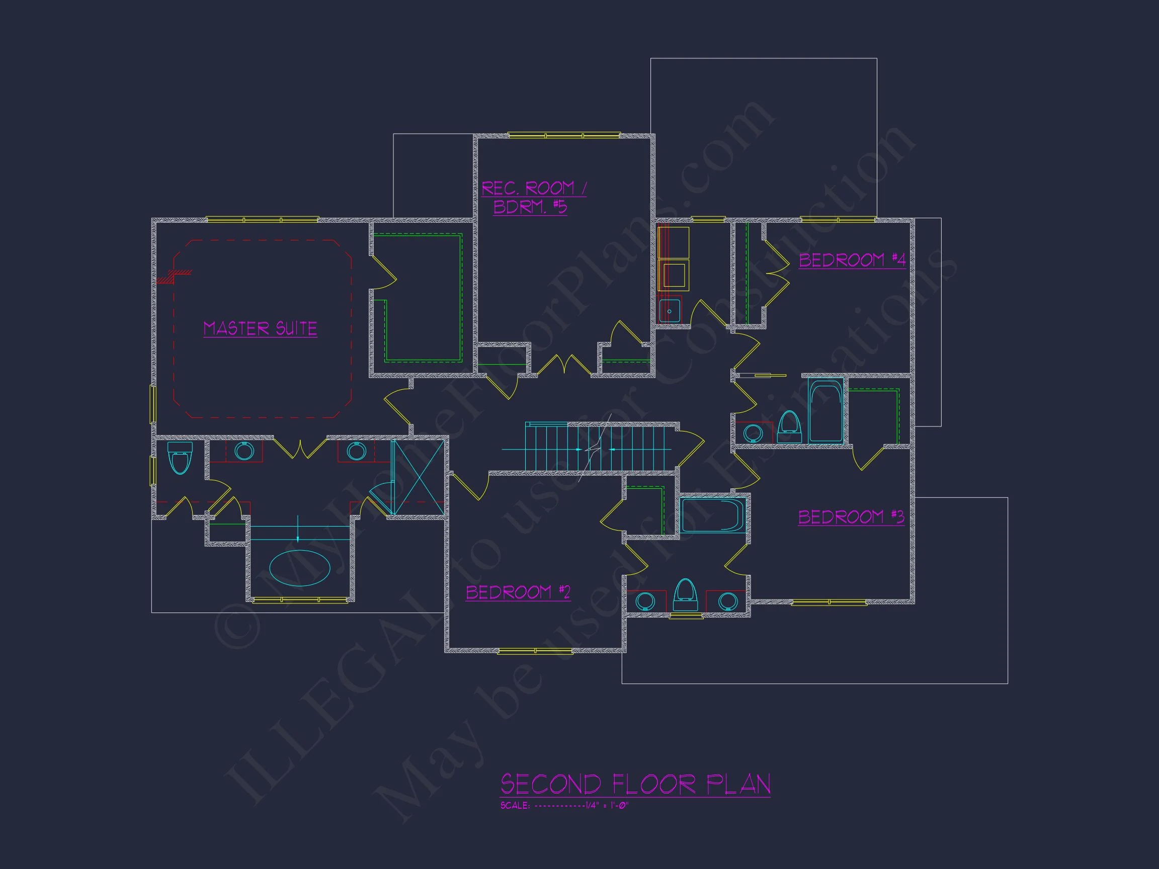 Traditional CAD Home Floor Plan with 5 Bedrooms & Open Layout