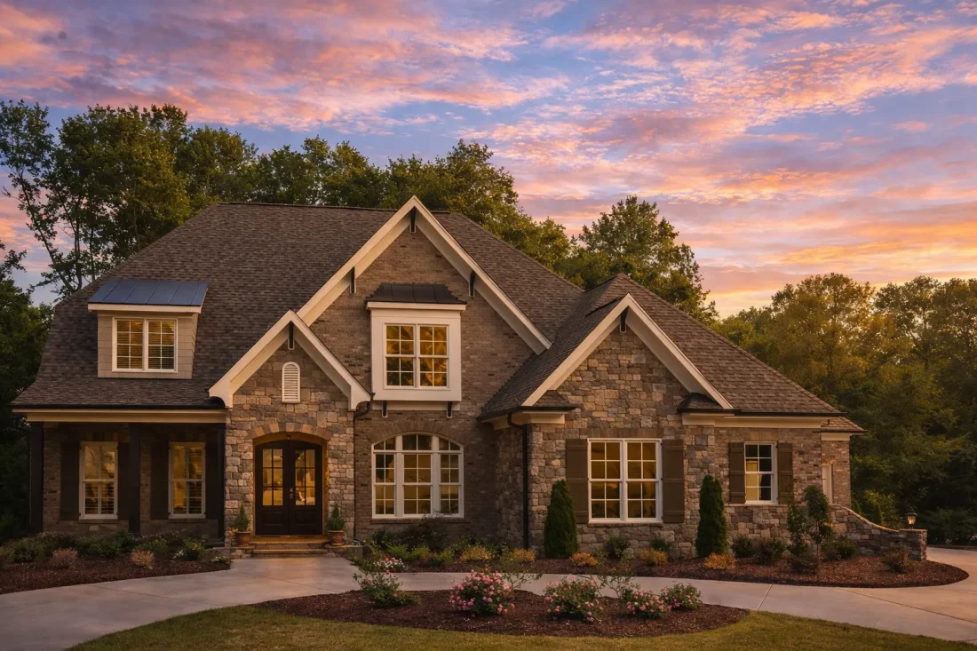 The combination of brick and stone gives this home a sense of permanence and craftsmanship, making it especially well-suited for homeowners seeking a classic exterior that will age gracefully over decades.