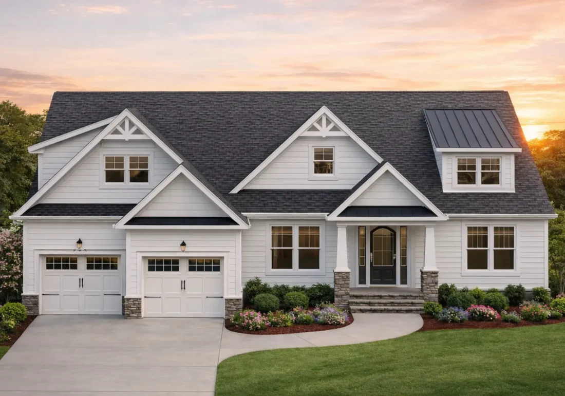 - Gable Accents: Vertical board and batten