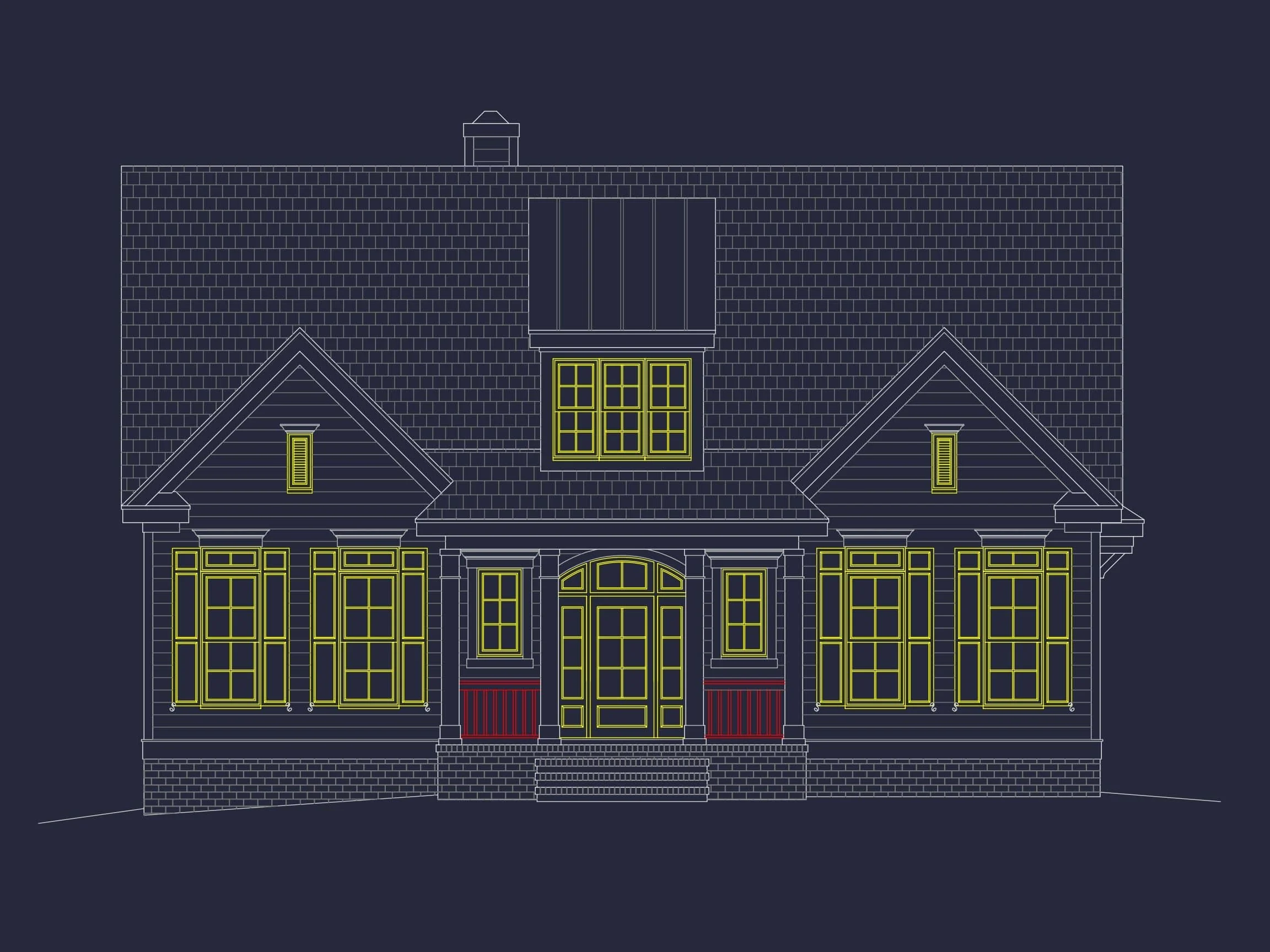 This design captures the essence of Cape Cod architecture—a hallmark of American homebuilding since the 17th century. Its steep gable roof, central entry door, and balanced symmetry create an inviting and timeless silhouette. Learn more about the Cape Cod style or explore the historical origins on ArchDaily.