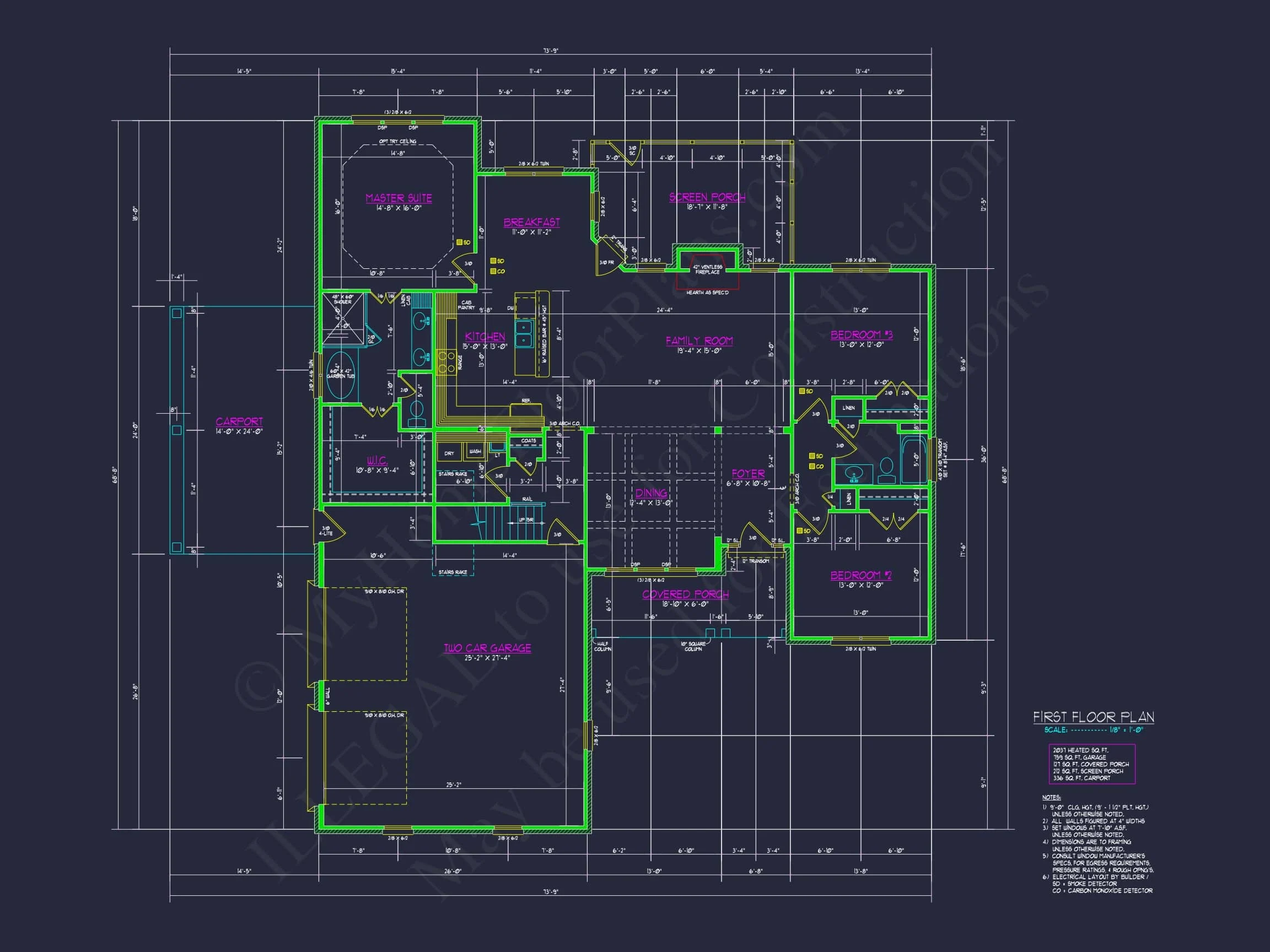 My Home Floor Plans, Inc. does not assume liability for any deviations in the plans. All information must be confirmed by your contractor prior to construction. Dimensions govern over scale.