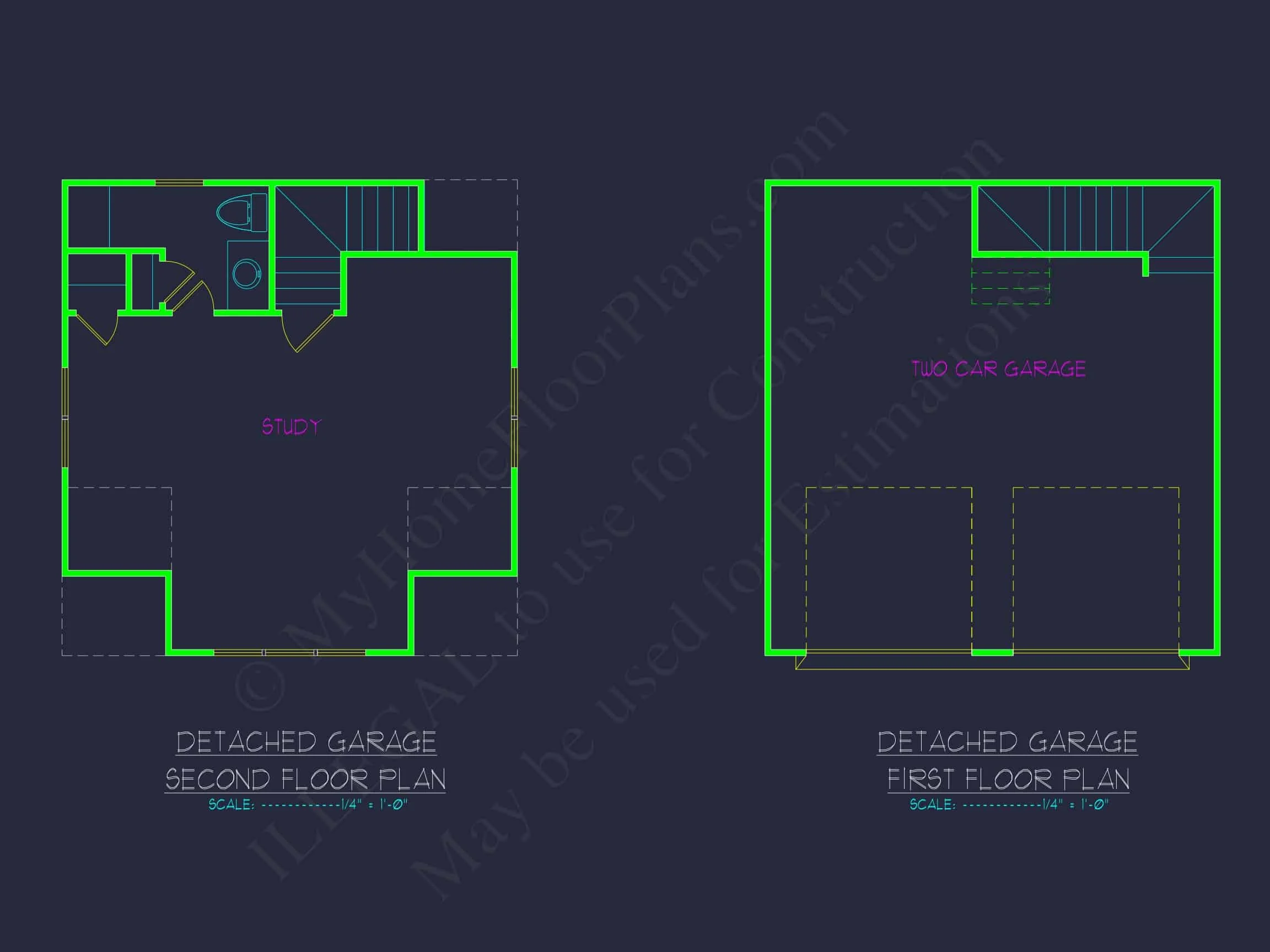 14-1504 GARAGE PLAN – Custom Garage Plan with Study: Modern CAD Blueprint Designs for You