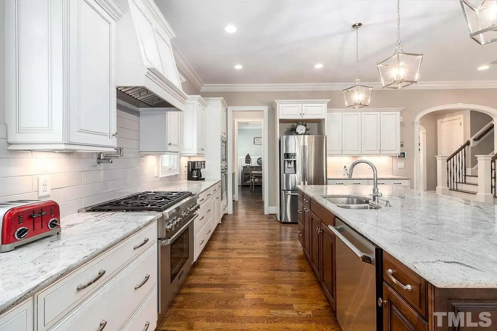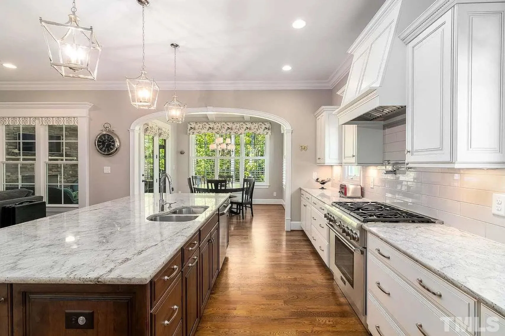 - Chef’s kitchen with kitchen island, walk-in pantry, and butler’s pantry.
