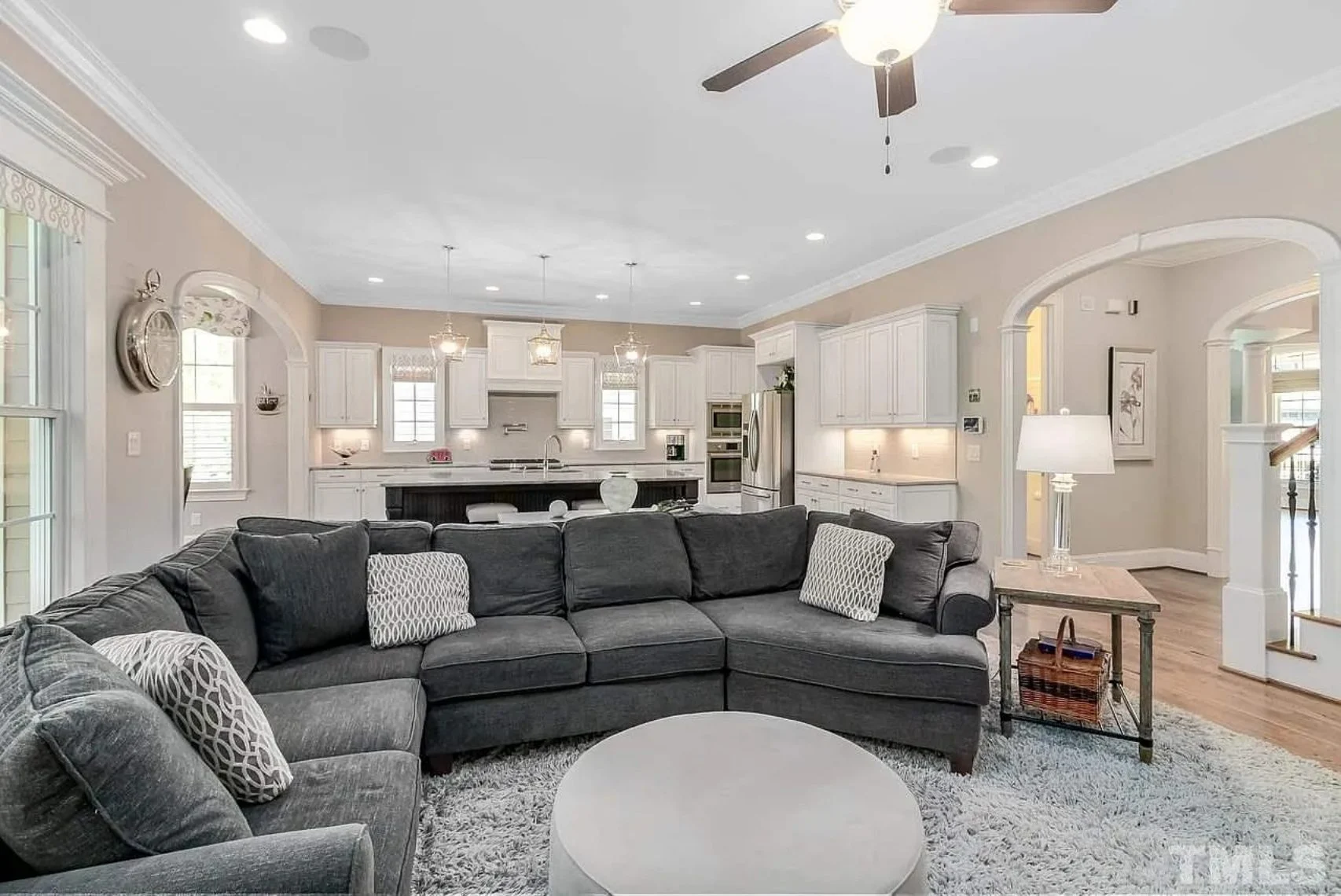 - Open floor plan seamlessly connecting kitchen, dining, and family room.