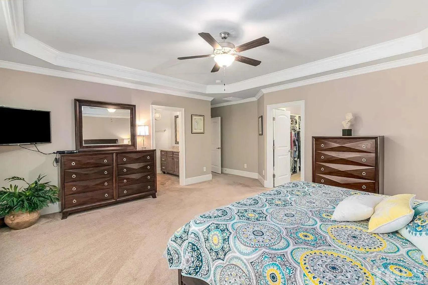 - Tray and vaulted ceilings for dramatic interiors.
