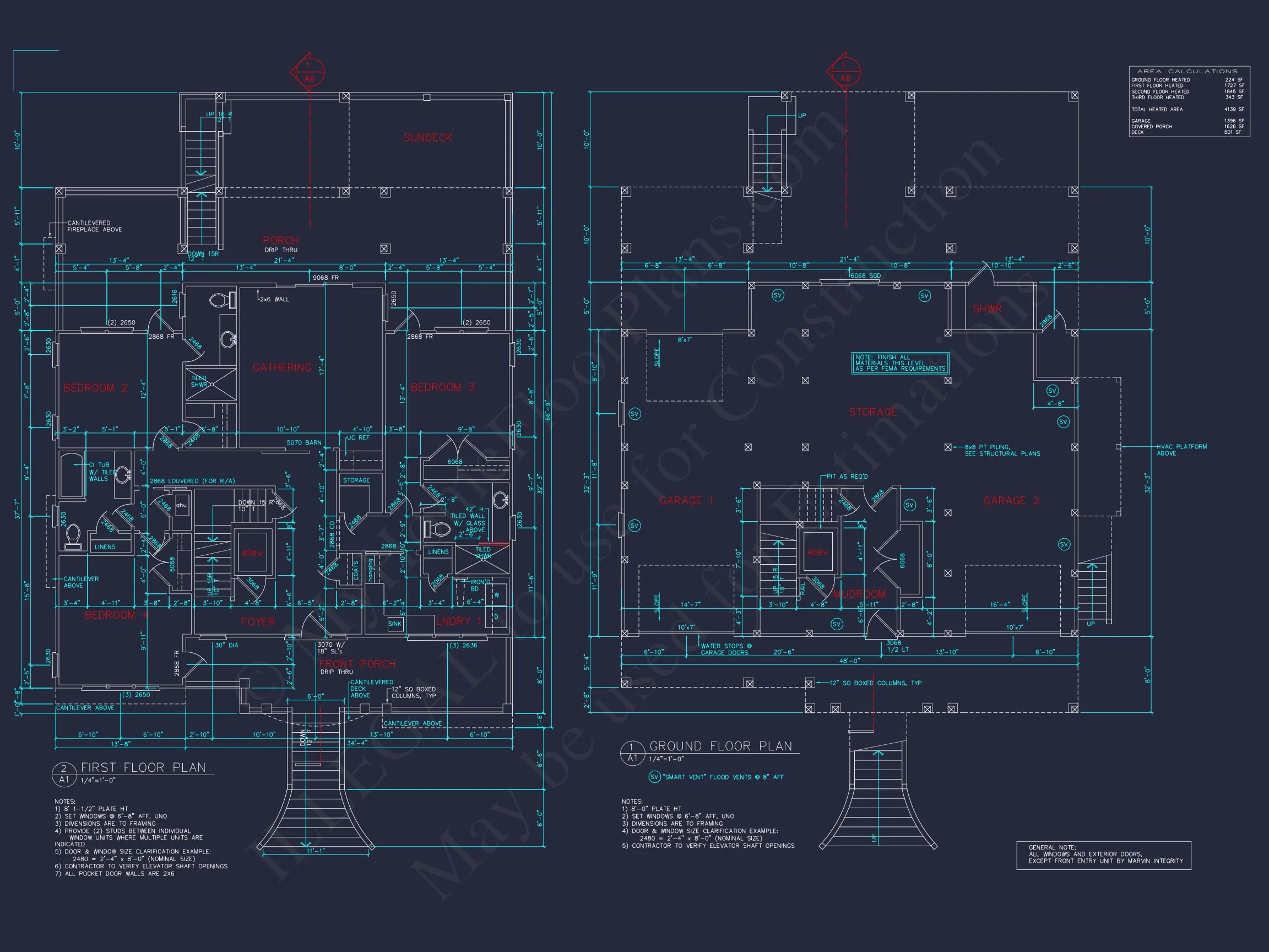 14-1632 HOUSE PLAN – Beach Home Plan – 4-Bed, 3-Bath, 4139 SF